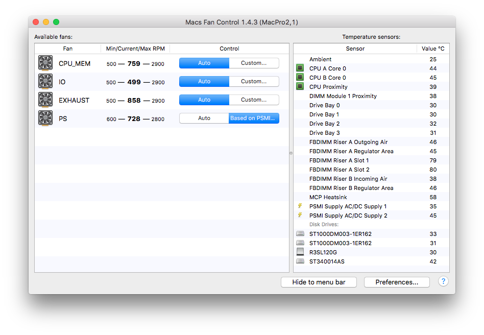 Model: MacPro2,1, BootROM MP21.007F.B06, 8 processors, Quad-Core Intel Xeon, 2.66 GHz, 24 GB, SMC 1.7f10