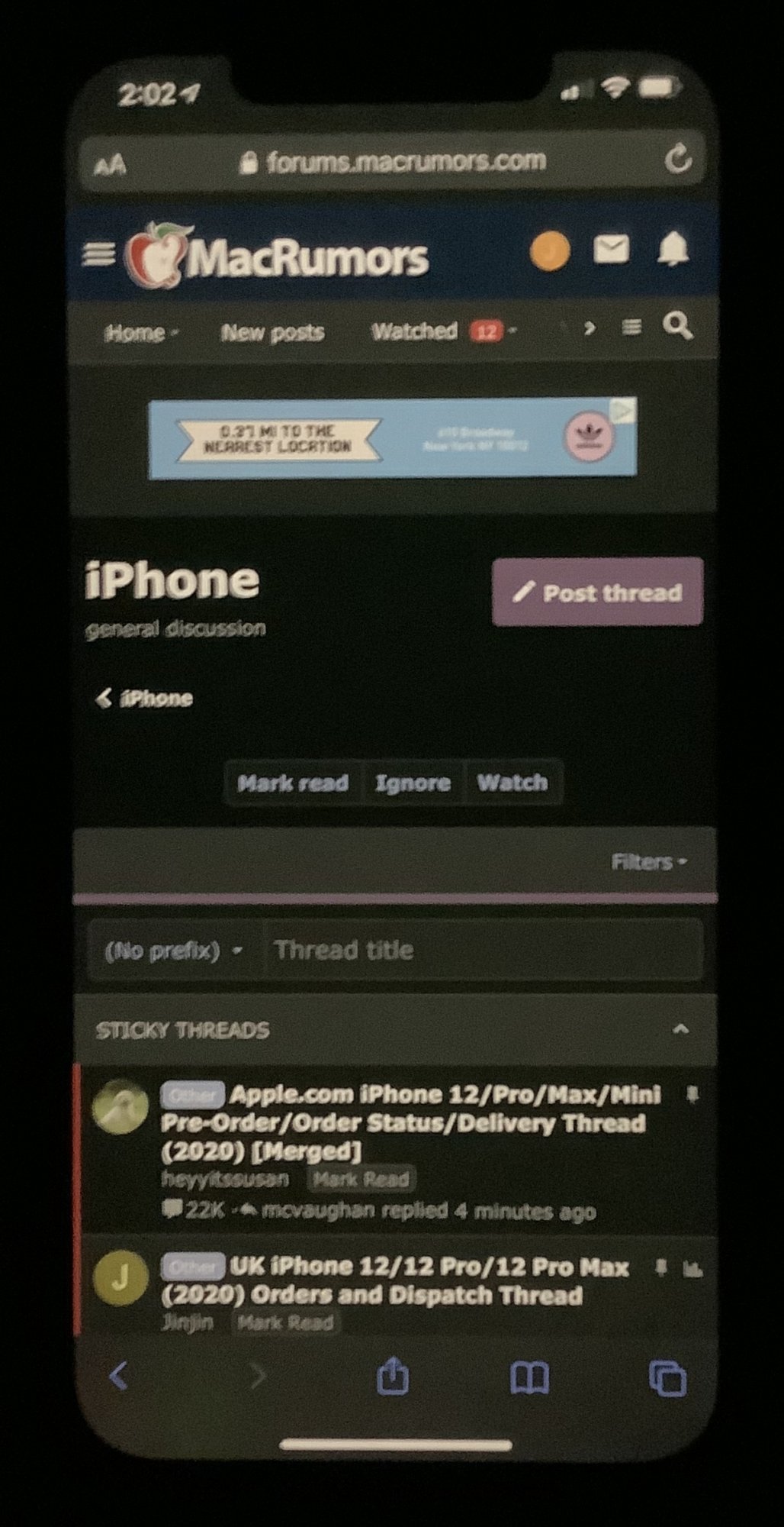 I’m using a 12 Pro Max, and I noticed that when the brightness drops to around 0-5%, the screen displays a greenish tint, particularly noticeable on gray backgrounds (like on MacRumors or Reddit app in dark mode).