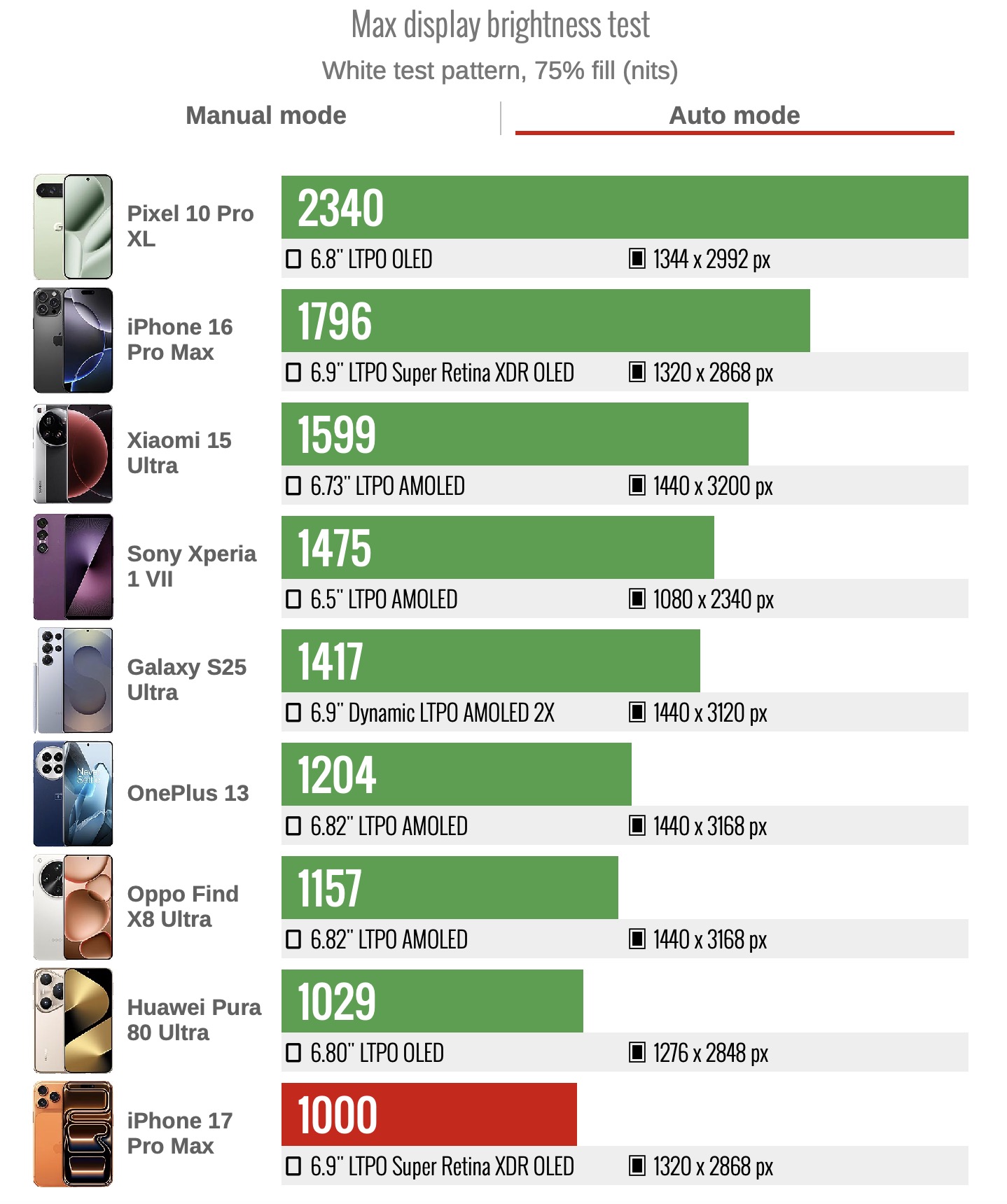Looks like Apple has changed the way auto-brightness works in software which makes method of measurement used by GSMArena useless.
