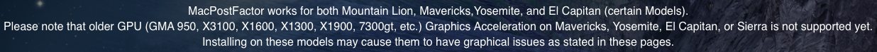 I've been wrestling for the past few days to get MacPostFactor 2.0.1 (I also tried 1.0.1) to try Yosemite, and then Mavericks, on a Macbook4,1 (Early 2008 model, essentially the same as the Late 2008 model) that relatives in my household use for web browsing, using Chrome. This Macbook had been running Mountain Lion 10.8.5 just fine, which I'd installed a few years ago using MLPostFactor v0.3--at that time, MacPostFactor hadn't been released yet. Recently I saw that MacPostFactor had been released in June 2015 (I hadn't bothered to check for some time), so I decided to use it to replace my MLPostFactor version of Mountain Lion with a MacPostFactor version, thinking that MacPostFactor must be superior to MLPostFactor, even though I hadn't been seeing any issues. I guess I thought it might fix issues that weren't obvious. Within a day of using MacPostFactor to install Mountain Lion (10.8.5) on this Macbook, the Chrome web browser began to show terrible window redraw problems, especially when trying to scroll a web page. I couldn't update Chrome to see if that would fix this, since the Macbook was already running the last version (49) of Chrome that runs on Mountain Lion, and using Safari wasn't an option since Mountain Lion's version of Safari is too old to work properly with a lot of web pages, so I decided to try using MacPostFactor to upgrade the OS to Yosemite.
