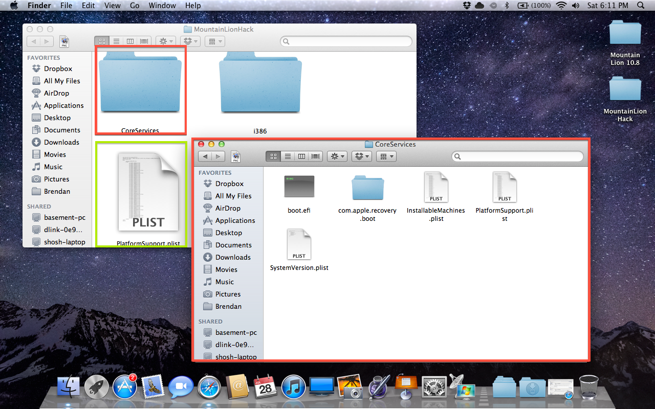 There are two PlatformSupports in the zip file. One in the root MountainLionHack and one in the CoreSupport folder. Following the instructions, I merged that CoreSupport with the one in the flash drive I created, replacing the files when prompted. Is there something I should be doing with the second PlatformSupport file in order to install successfully?