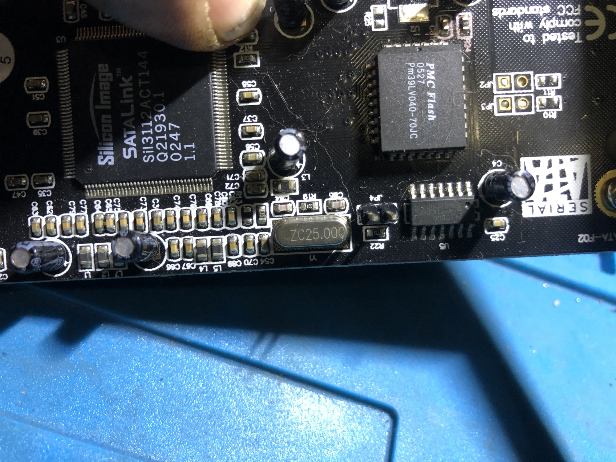 Hmm, maybe it’s just the WiebeSATA-firmware. But with the 3114-card, i only get a working connection with the lower rear connector. Nothing on the upper one as well as on any of the two on the upper side of the card. While with the (otherwise nearly identically looking) 3112-card i have, both of the connectors are working.I mean, SIMULTANOUSLY. I.e. both ports should work - but writes never happen the same time.