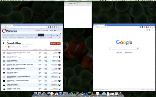 You can see the two Chrome windows. Of course Chrome doesn't run on PPC, they're running on another windows computer and then being displayed on the mac through RDP.