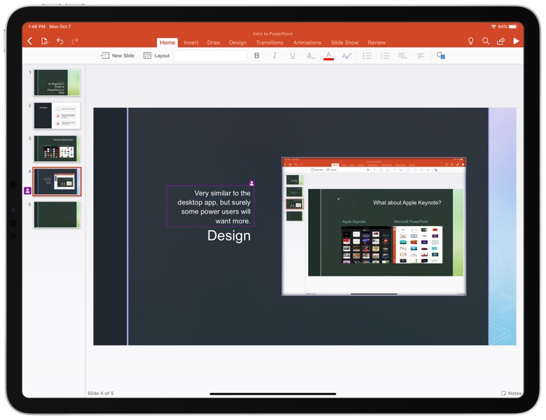 powerpoint is just one example; many ipad apps are mini versions of desktop applications