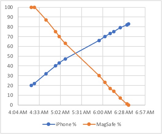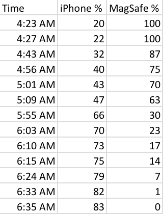 Charging performance can be impacted by a number of factors like ambient heat and whether or not the iPhone heats up when charging. Because of heat issues, the MagSafe Battery Pack charges an iPhone at just 5W while on the go.