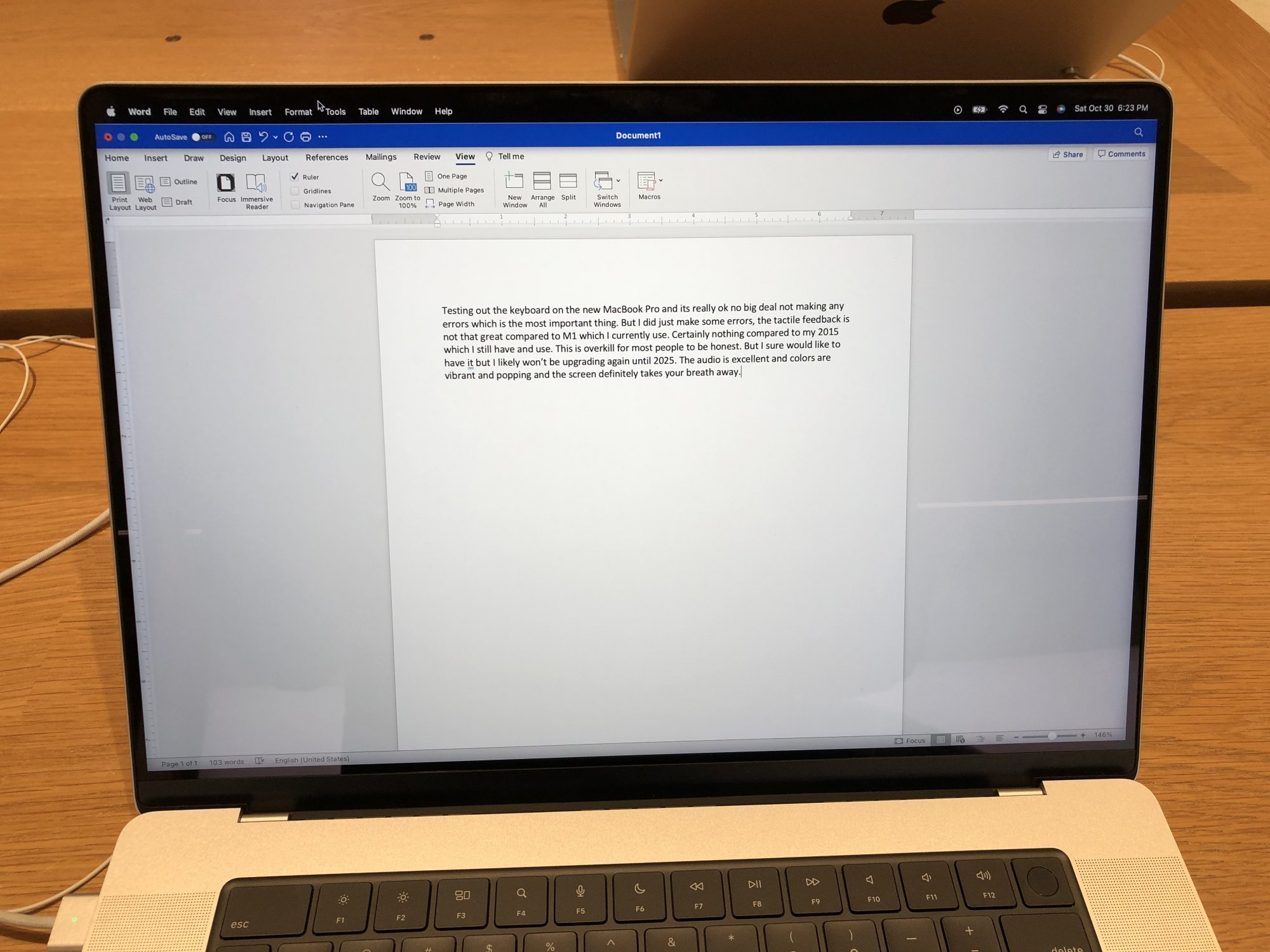 Again, that gorgeous display will sell anyone on this device. Typing was ok, nothing to write home about (no pun). But I personally think its a cross between the M1 MBP and the iPad Smart Keyboard. The good thing is, typed out a paragraph with hardly any errors. As you can see, this is an older version of Word for Office 365 thats running on 2021. Apparently Apple is not into upgrading its subs, but if you want to see how the full screen behaves, with the menu bar, it handles it well and I like it too. The global menu darkens and provides a slick look with focus on the application.