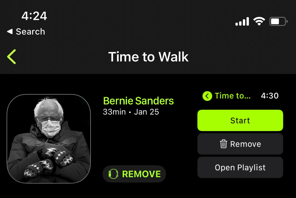 This is like a mini podcast, but I have never done the research to find the good podcasts and never got in the habit of listening to them. This just popped up on my watch and was easy to try. Now I feel like I have to go take a walk if I'm interested in one of the speakers, and that's good for my health.