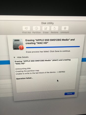 Having tried many times the hdd drive in the fusion seems to work and erase / load fine... but the ssd part of drive seems faulty