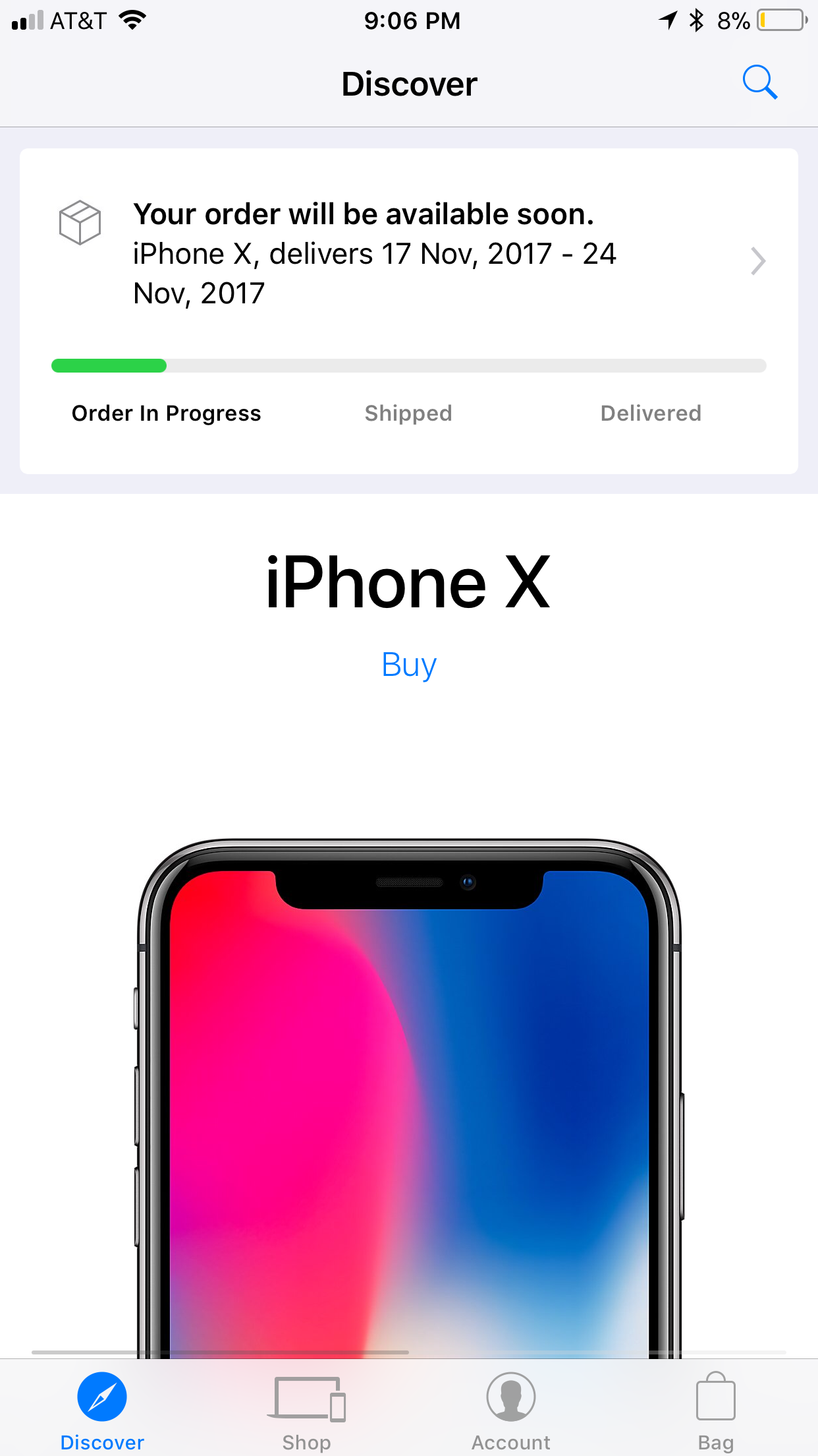 I am. November 17-24, order comfirmation at 2:30 AM Central time. I got the Silver 64GB one with AT&T next. No cc charges and no movement since the 27th. I do not understand why we arent getting bumped if so many people cancelled their orders and 11/16-11/24s are getting shipped.I pre-ordered and got my confirmation email at 12:26 AM PT. iPhone X 256GB Space Gray Verizon. I ordered on the Apple website - I'm not in the upgrade program and I just paid the full price.