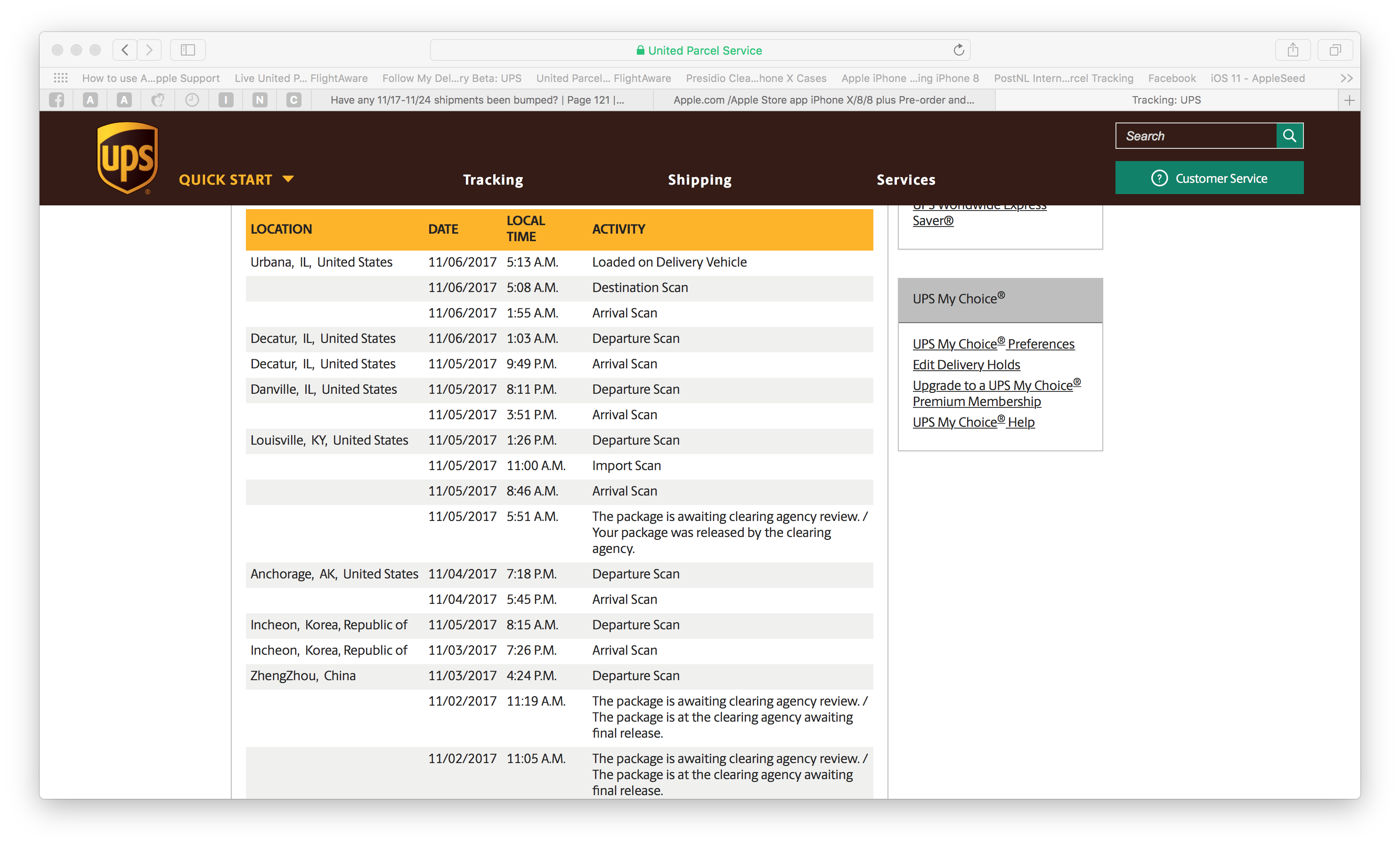 When did you order?Mine was scheduled to ship 11/17 - 11/24 but I woke up this morning to a notification from Apple that my iPhone X shipped. Already have the UPS tracking with scans from China. Delivery date is this Friday, the 10th. It’s a Silver iPhone X 64GB paid in full on the Apple Store app at 3:11am Nov 3rd.