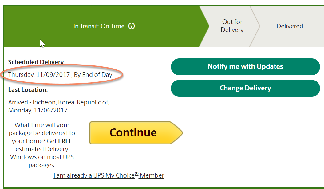 Changed to 'preparing to ship' yesterday afternoon with credit card charge, and 'shipped' email received at 3:17AM CST today. Email shows 11/15 delivery, but UPS shows 11/10.