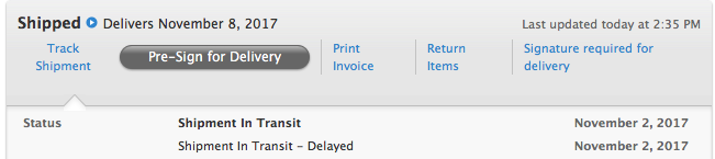 My delivery date is still Nov 17-24. I am still very upset with Apple. I called them for the 23rd time demanding an explanation as to why I am not entitled to an iPhone on delivery day. I told them I deserved one. I wish I had gone into the store to voice my concern because over the phone they were not able to see my body language - stamping feet, turning in circles, holding hands over my ears and inflating my cheeks with air. They didn't offer my free air pods either.