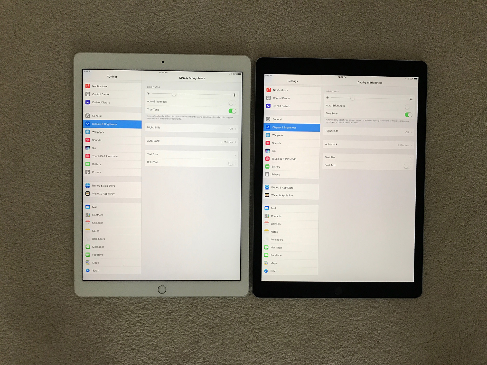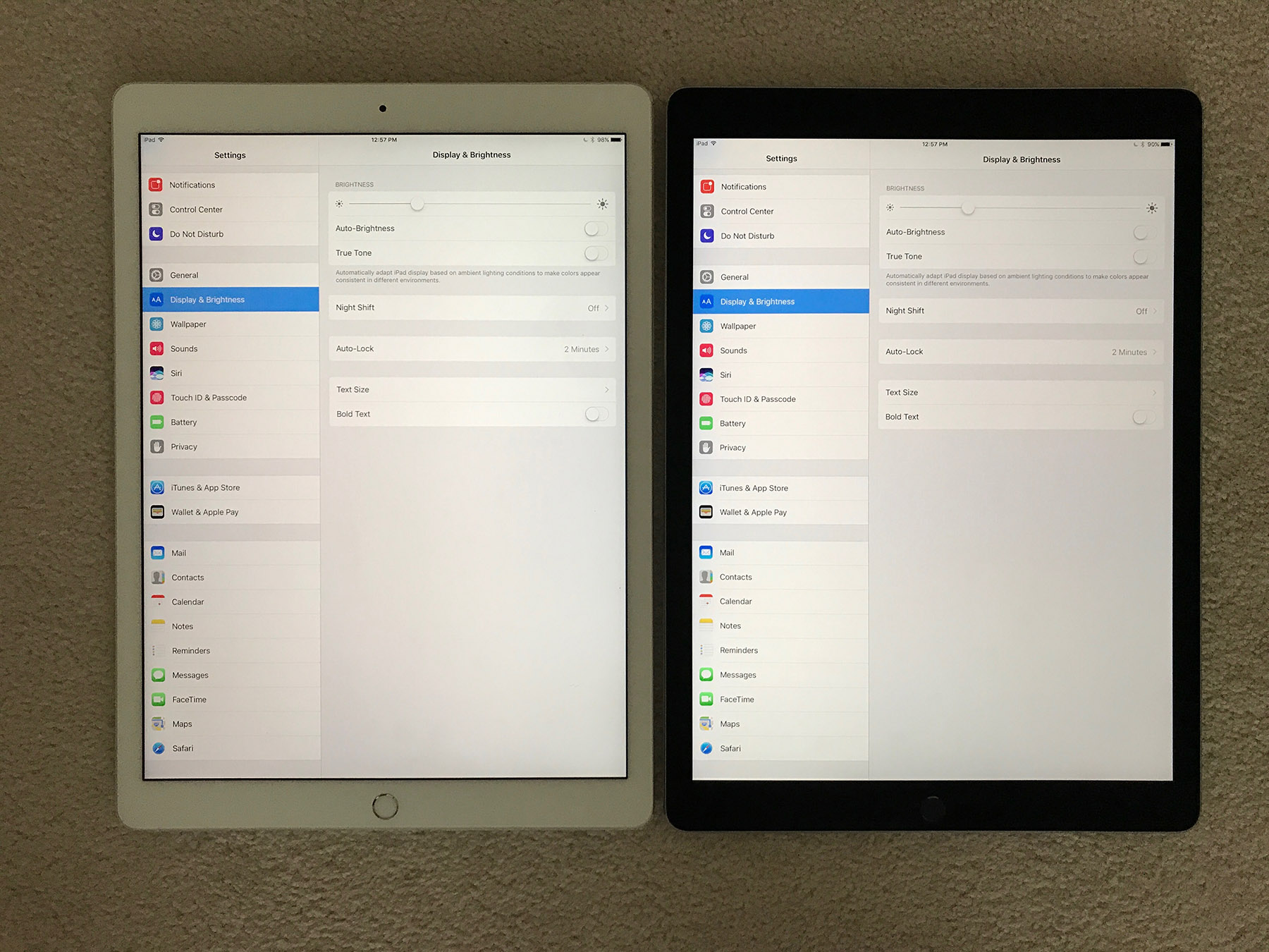 Blacks were pretty bad on my first 256 unit, black levels on my 64 are pretty good and I think better than 9.7" even at max brightness maybe. even my first 256 had pretty horrible off axis tint and brightness dimming, the 64 not as much but still I can't help but feel like off axis my 9.7" pro might still be better (I can see pink tint off axis on both units, maybe its just a compromise as part of the screen tech to get ProMotion, I dunno)