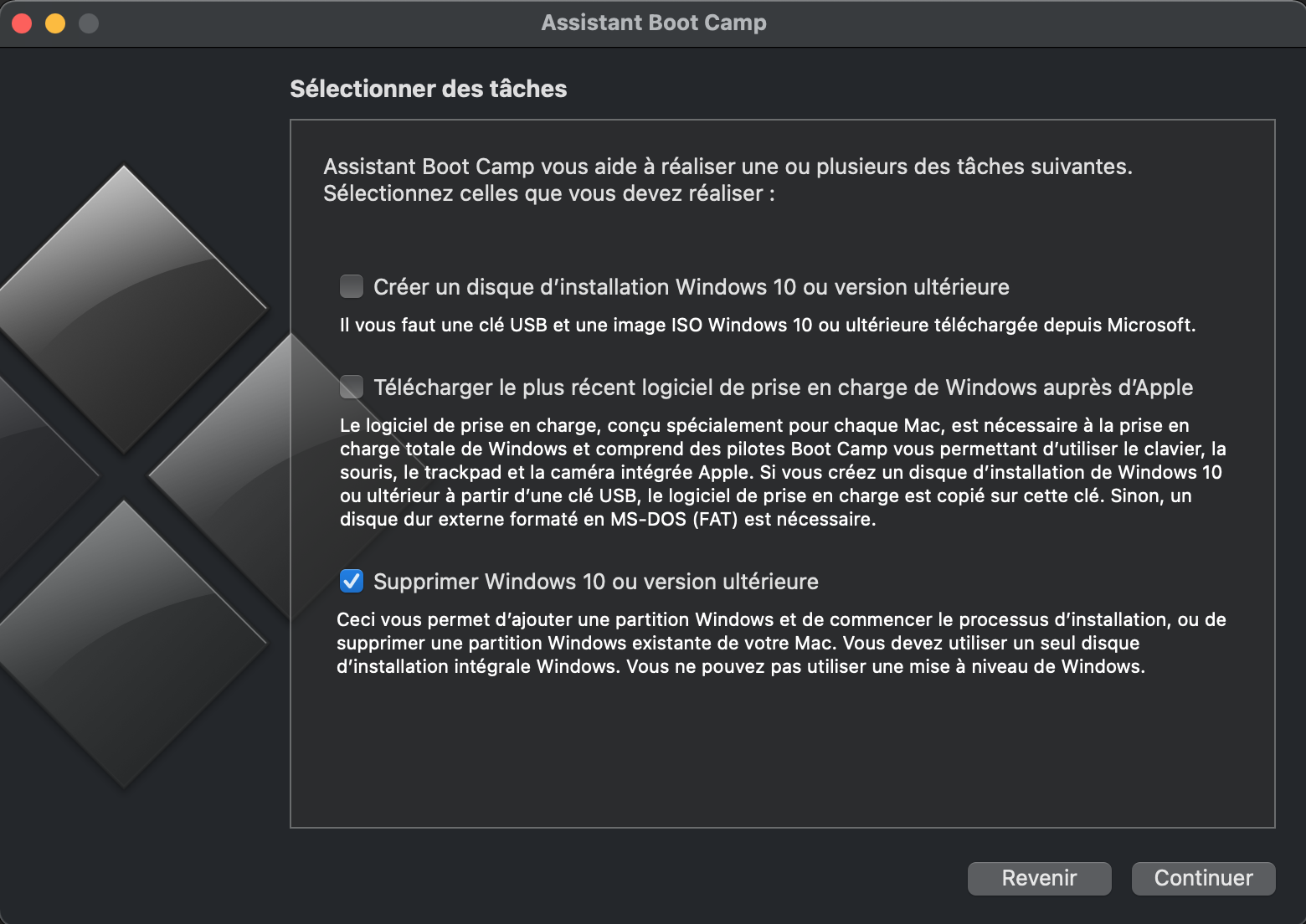 I'm not making it to the Boot Camp Assistant screen where it asks you to drag to set your partition size. The Assistant seems to get me through the long part of copying Windows files from the ISO file to the USB stick, then asks me for my password twice, then "quit" is the only option.