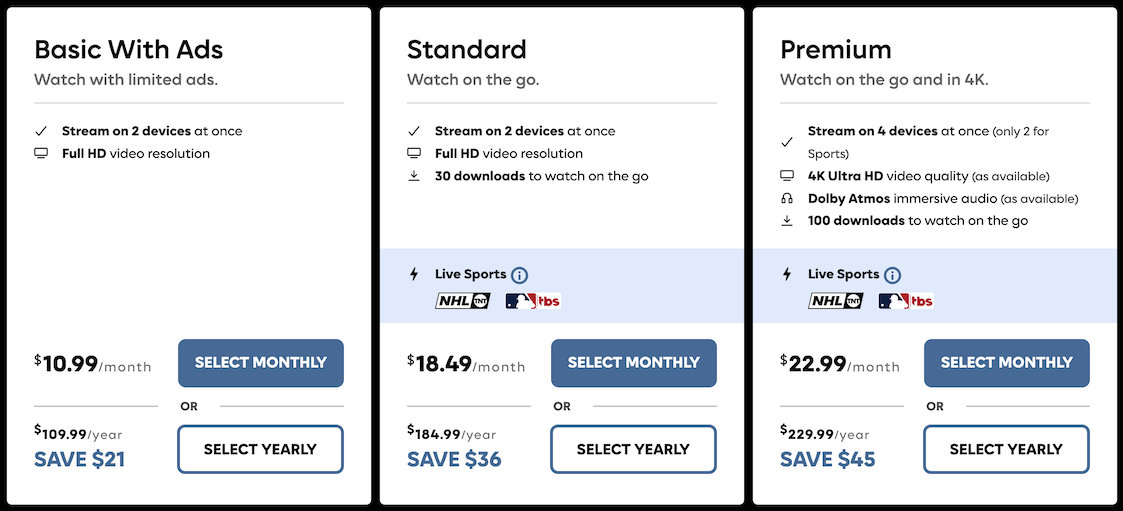 Hmm… What do Standard and Premium provide if the base plan is *ad-free*? Is the content limited, say to only “premium” shows or HBO originals?