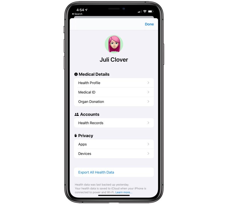 Information like Medical ID and Sources, which was previously available through dedicated tabs in the iOS 12 Health app, is now located in a new Profile section available by tapping on your profile picture at the top of the Health app.