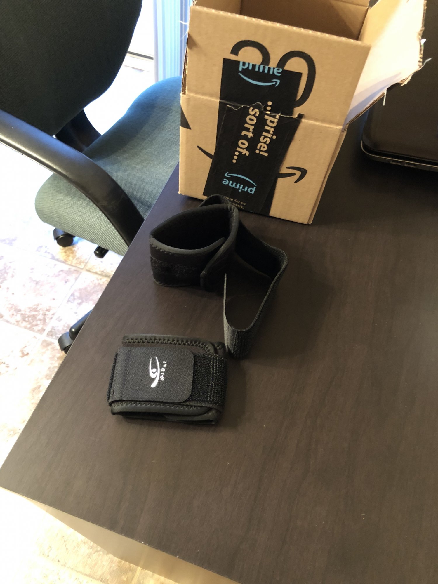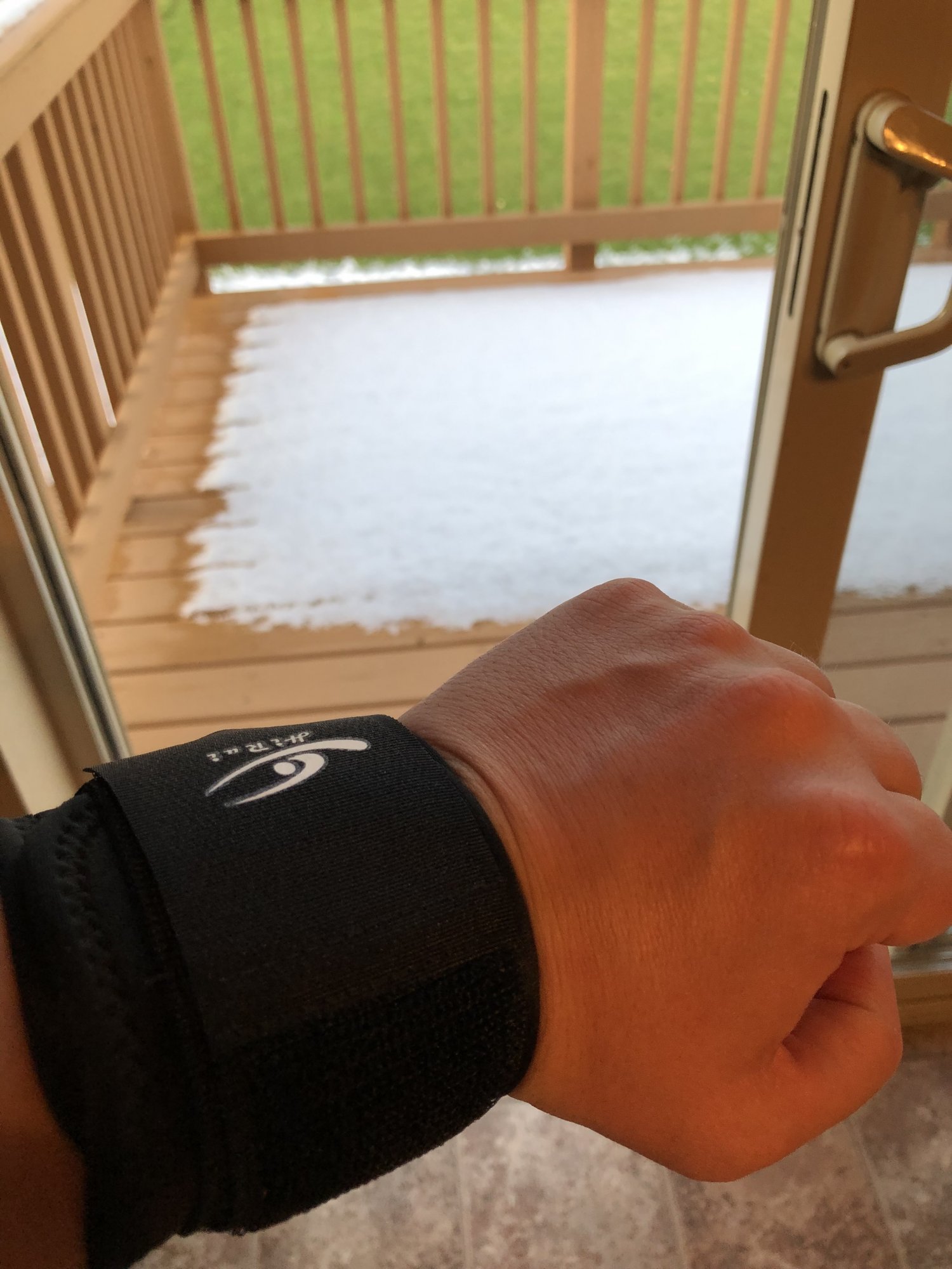 Another new product to share with you today. I tried purchasing a smaller set of compression wrist wraps. These are made by ‘Hirui’ [$10.00 on Amazon]. But these have a really unique design, you put your hand through a cufflink first, then you wrap the strap around your hand, and the Velcro is almost industrial-strength, so they won’t slip or come loose. Outstanding product.