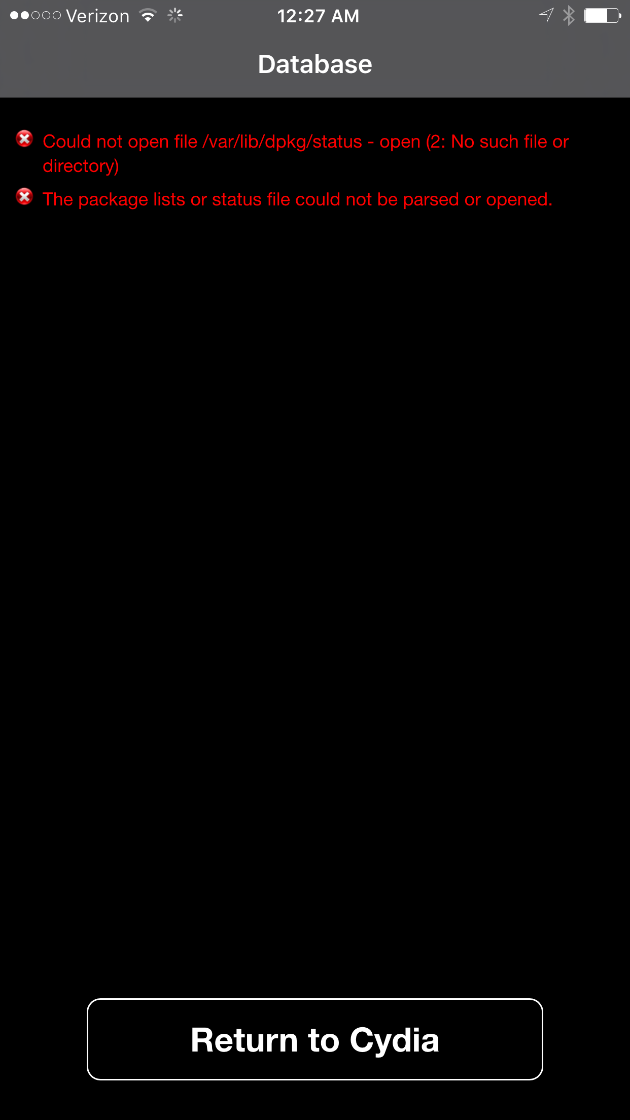 View attachment 644647 Hello guys hoping there's a solution to this, whenever I open Cydia I get an error could not find file /var/lib/dpkg/status.... My lord if anybody has a fix to this and can get my Cydia working properly and i am able to download the things that I need, I will gladly donate 10$ for your support ...