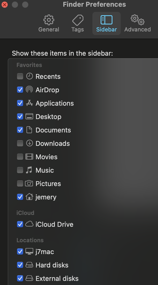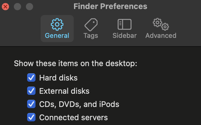 But I can't "see" the drive as a whole in Finder and System Preferences/General doesn't appear to have an option to make it visible. I am the Administrator. Apart from fixing this, are there any other "global" settings I should apply?