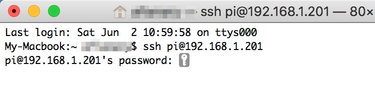 * go in to Terminal. enter ping raspberrypi This should give me the Pi's IP address, which should be the same as when I go in to my routers setting and find the Pi, next to which there is an IP address.