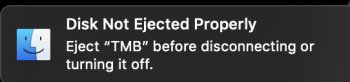 by mistake, I ejected the TMB external drive in the sidebar. from the back of the drive, I unplugged and re...the usb cable and restarted. all is good except this @@#$% alert that comes up every few seconds. I told the puter, I was sorry but it's still pissed. how to stop the alert before I crawl into a fetal position and weep. thanks