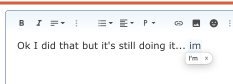 It's driving me crazy, no of course I won't really throw it out of the window but constantly having to go back and correct when it changes my words to "I’magine", "I’mage", "I’mmediately" etc etc is making me use it less and less in favour of my Windows notebook that just lets me type what I want to type.