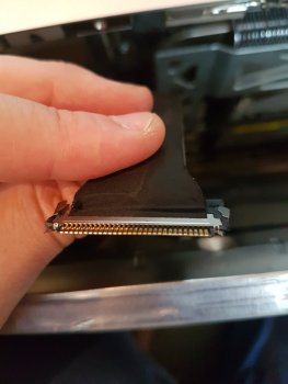 Can you help me diagnose what I might have done wrong? Keep in mind that in the 27' 2010 iMac replacement of the GPU does NOT (unlike the 2011 model) require to take out the logic board because the GPU is at the front not the back, so it is simpler and there are fewer steps where things could have gone wrong. It is literally just the 3 display cables (sensor, power, display), and then slide out the GPU. Could I have damaged the LDVS cable?