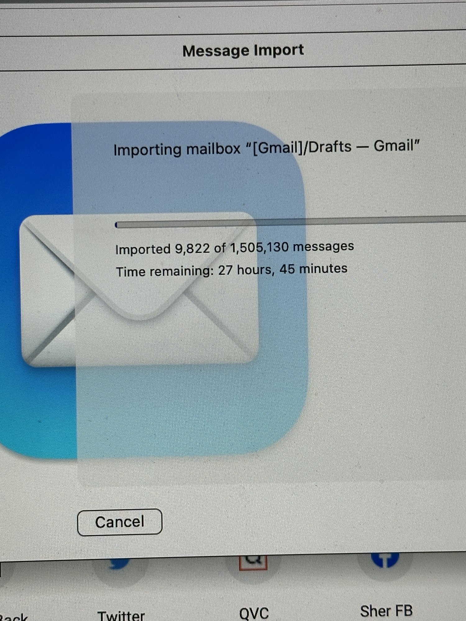 3. This morning I had a message on my screen saying "Mail needs to import your messages." (see photo).