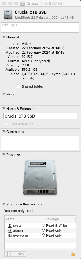 I have a 2TB internal drive, of which 1.5TB was used before the deletion. It should be down to around 450GB used now, but still shows 1.5TB used, I assume because of what's in trash.