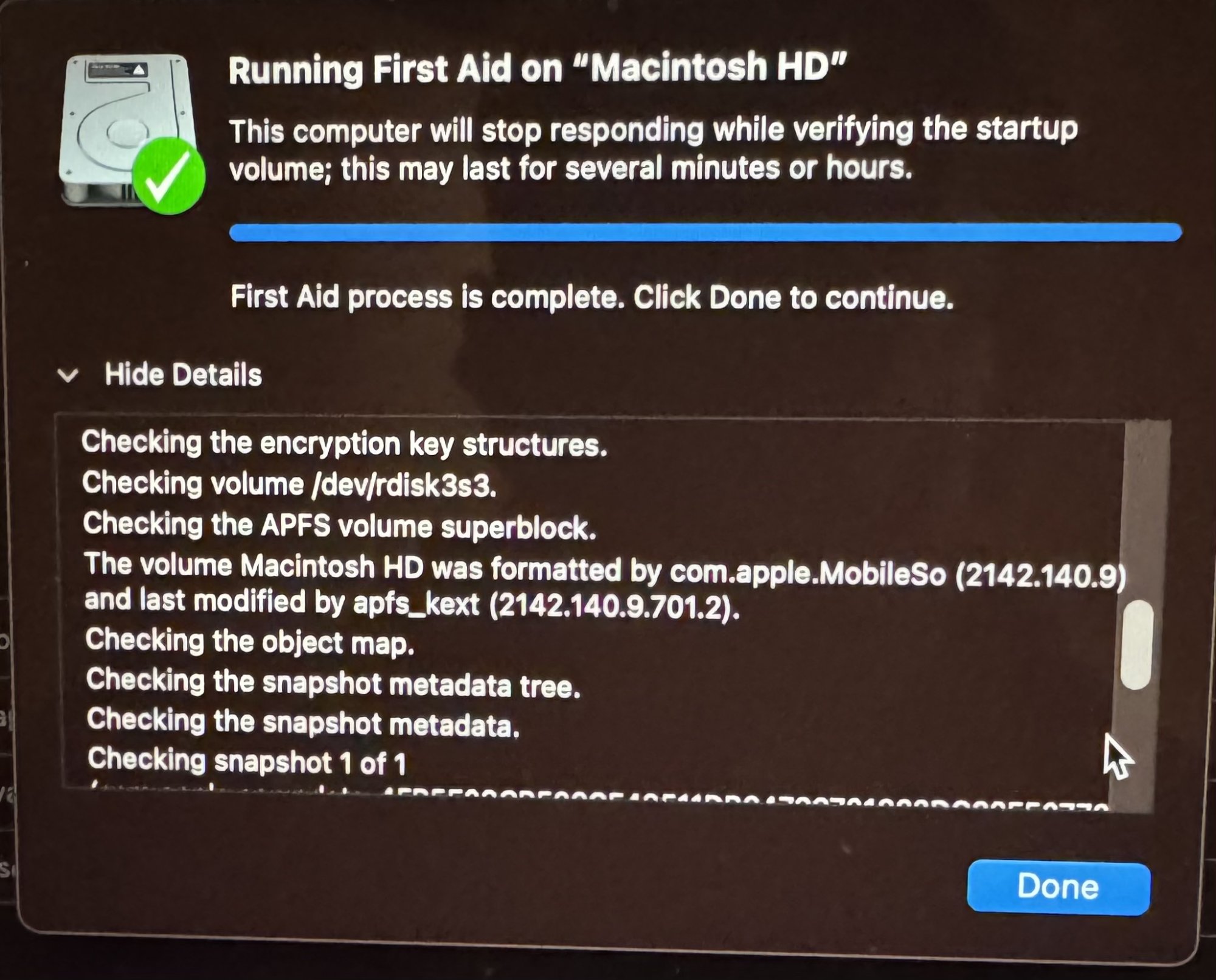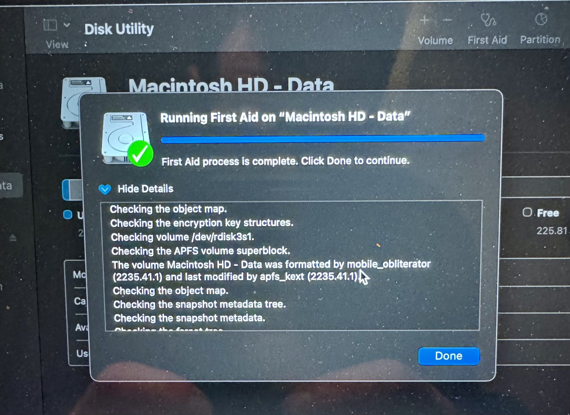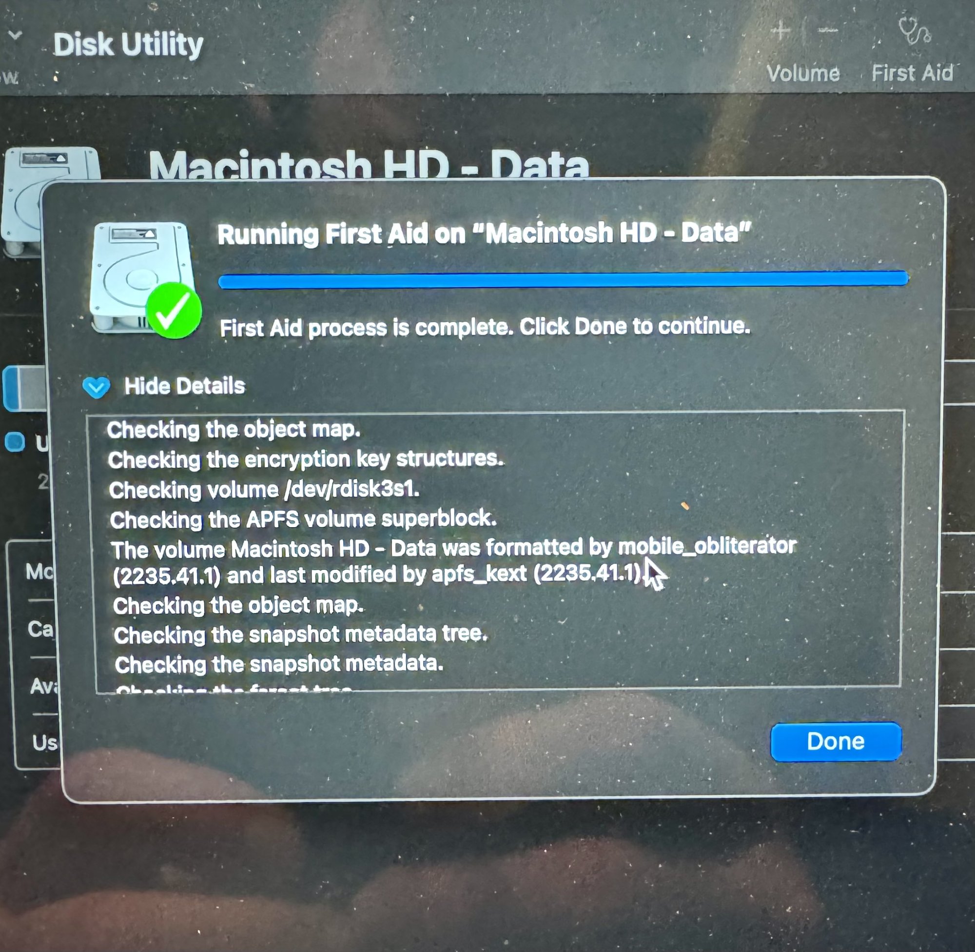 Devices signed in and for 2fa I use hardware keys. FWIW the keys come in handy if one wants to lock an Apple ID and throw away the keys lol. As far as resetting I’ve done that on two occasions, the second time taking my entire ecosystem, which consist of MacBook Air M1, Mac mini M2, iPad mini 6 and iPhone 15 pro all at the same time. I Reset them all to factory from brand new devices no backups and issued a new Apple ID. However, the one thing that’s common to all three is I used the same phone number for the Apple ID, which is now been removed and replaced with a brand new phone number. I would like to think of myself as info. security minded I don’t have social Media accounts I’m not a member of talk forums other than here, I don’t have a public web presence but to the contrary, I do my best to clean up behind myself, and to maintain the smallest footprint I can when it comes to the Wild Wild West. I should mention my profession, a land developer, so if it weren’t for dirt I would’ve never had a job so technologies not my forte although I can find my way around an iPhone, and a MacBook fairly well and enjoy Apple products as they simplify and streamline my life however, it sure feels Apple is strayed away from what Steve Jobs had in mind to a sharing and fairing platform. What’s with all the sharing crap?! so here’s the punchline. I went out and bought a brand new MacBook M2 didn’t put an Apple ID in it didn’t put my thumbprint in it turned it on, and here’s the mistake I made tethered it to my iPhone 15 for a hotspot to activate the Mac within 20 minutes Through https:// port 443 I’m brute forced entered through .ssh, the system was overtaken in minutes. I couldn’t block all conveniently incoming connections fast enough and my hard drive was hijacked. Attached is disk utilities report which states com.apple.mobileso has reformatted the drive conveniently unmounted the system volume and loaded it full of malware. It’s a raging out of control assault machine that has my keychain, and every other photo and digital personal item I’ve ever had and I cannot stop it, I’m not fast enough in the terminal, nor at this point have any idea how to gain control of it. hindsight 2020 they have gained access through SSH and the console. I can see the malware matter of fact Stevie Wonder can see it. The entire system is nothing but malware that I cannot delete it as my admin privileges revoked nor does sudo or su commands have any output. A simple “sorry” is all she replies! I’ve attached photos that I had to email to a different account as the photos are being deleted, almost as fast as I can take them. My iCloud accounts I’m being logged in and out of for some reason being locked into now so whatever that means I don’t know, and the device passcode if you can believe has been turned on and off a few times as well as Face ID. The last time I logged into Apple, I had two passkeys saved. Double logins for my email and any other account that has logged and yes, that’s with two factor. I’d give my left one to see the photo of the other passkey as it would give me a visual as I hunt them like a polar bear!!! I recently read malware is up 200% with Apple devices so after reading this does anybody like to claim that iOS devices don’t have malware? Apologies if I’m coming across as short, but my patience has been tested. Like to finish with mentioning, I did purchase an additional MacBook M2 that’s in a box and if anybody knows how to completely disable ssh, and any other Telnet or remote access, I will pay good money to have that service provided.!