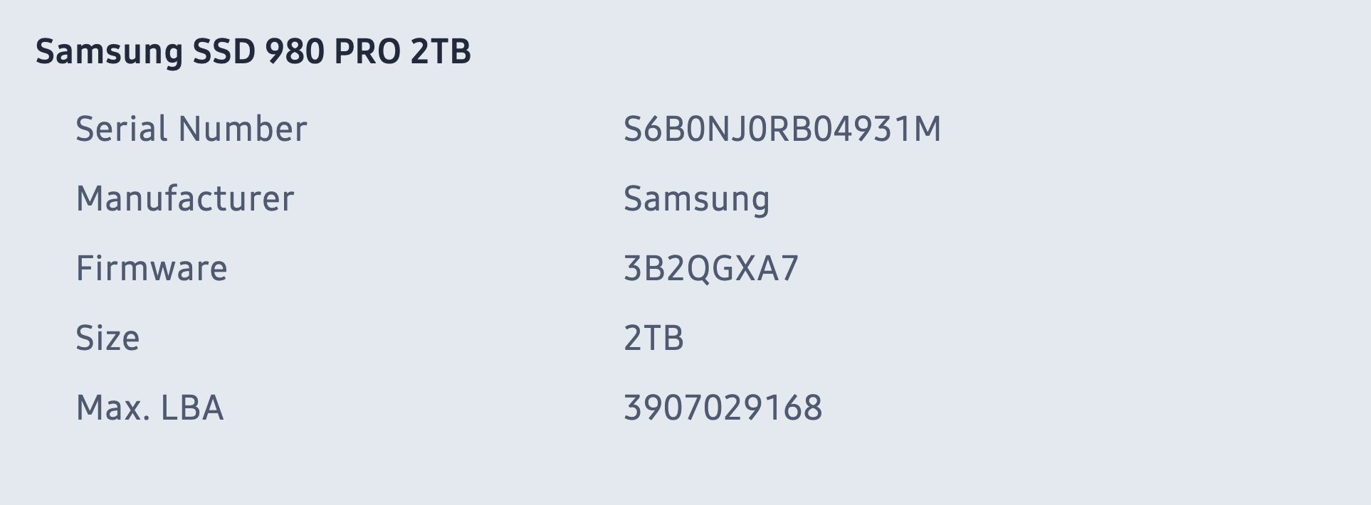 Namespace 1 Size/Capacity: 2,000,398,934,016 [2.00 TB]