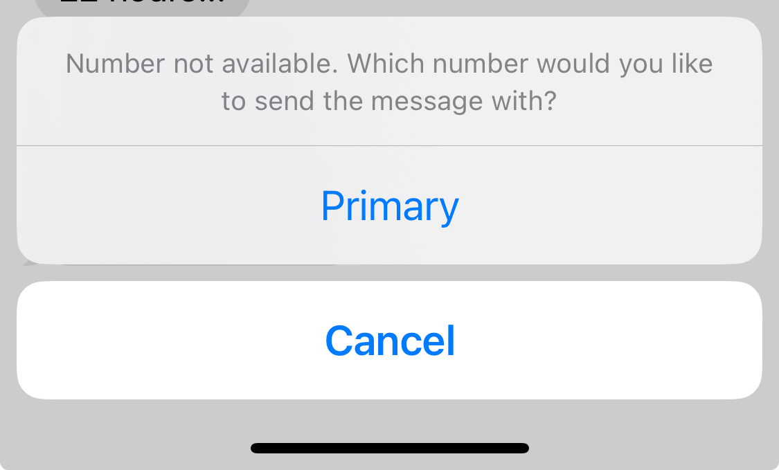 If I put the sim with the 2nd number into it and try to send an sms, it tells me that the number is unavailable and gives me an option to use the primary number, which ends up being the secondary number. There is no way to send an sms using my primary number anymore.