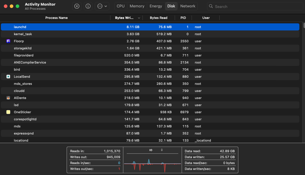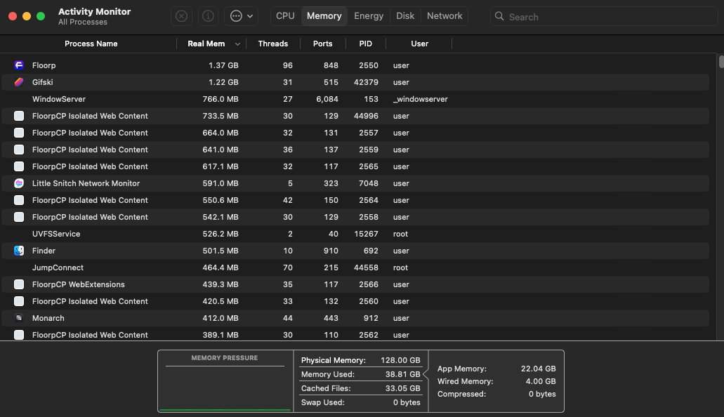 If you have any 3rd party apps in System Settings > Login Items, disable them and delete them. Then shut down your Mac, wait a while and reboot it. That way, you'd get rid of those 3rd party apps running in the background. Even with 128GB memory, you might get a hard time with those apps. Especially those, "we'll-clean-your-mac" type apps. Also, that would get rid of Google, Adobe or MS etc continuous automatic background syncing, their helpers' background syncing.I don't get it, which is the offending app in Activity Monitor that is causing this?