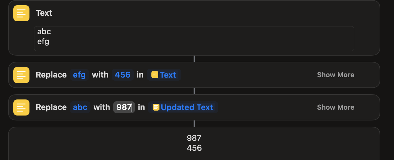 I am trying to make a shortcut that will find and replace 2 different things in a notes file.