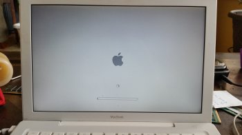 I plugged it in, and pressed the power button. No bootup chime played, however, the screen lit up and the apple logo with a progress bar appeared. The progress bar went to about 2 or 3 percent, then disappeared. I thought then it would boot, because it showed the loading apple logo image.