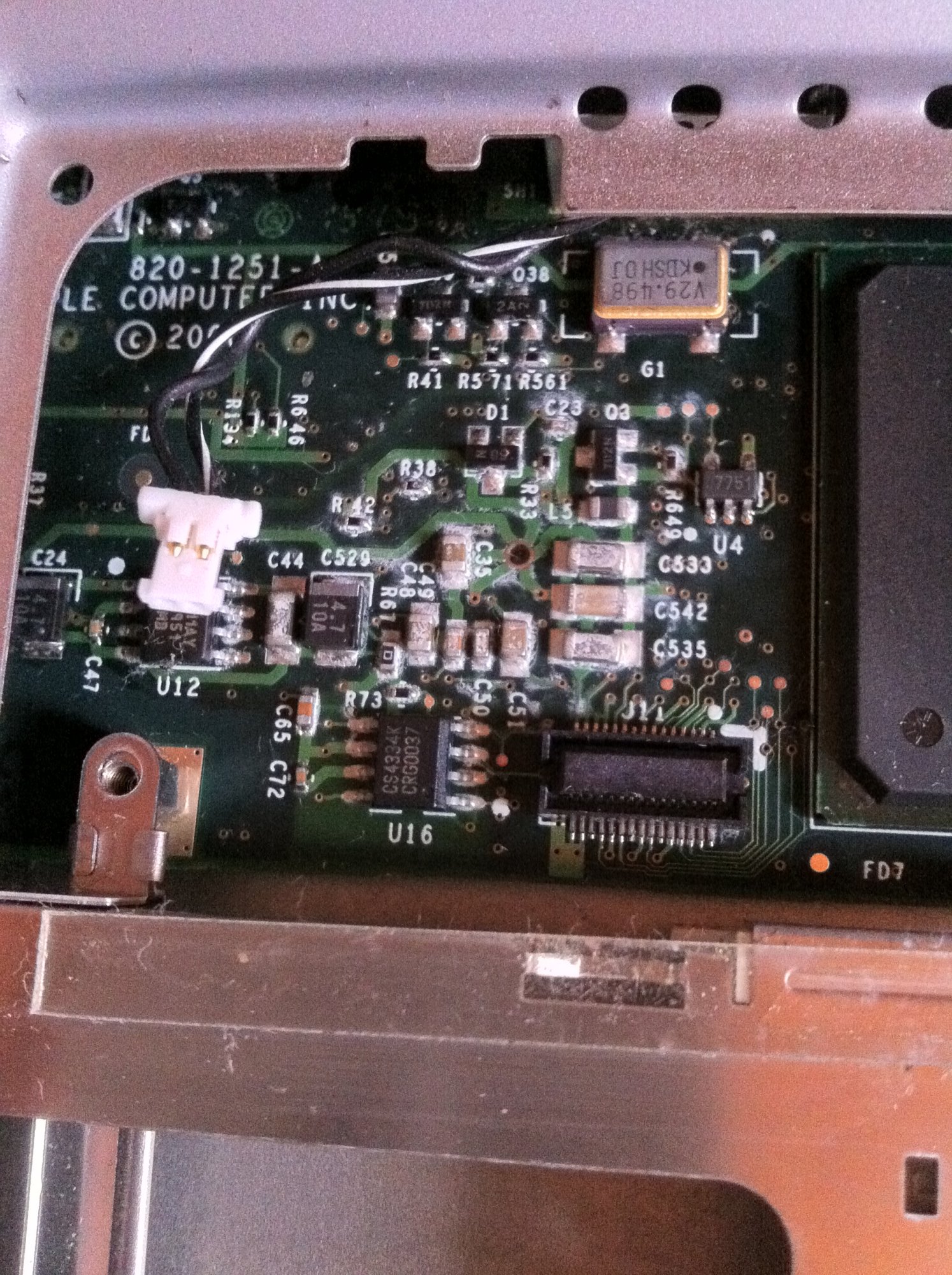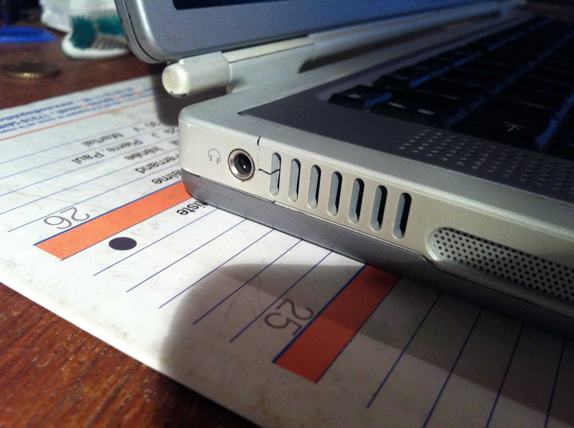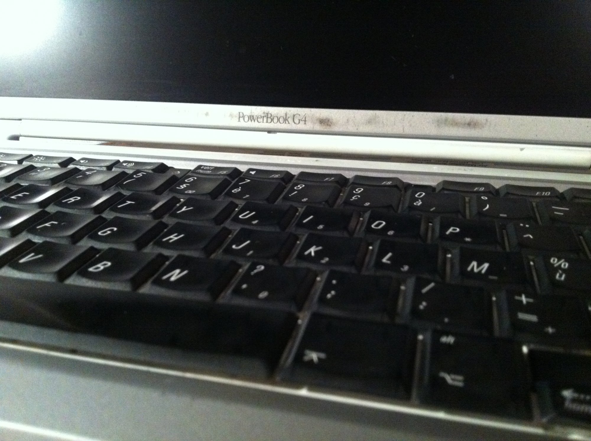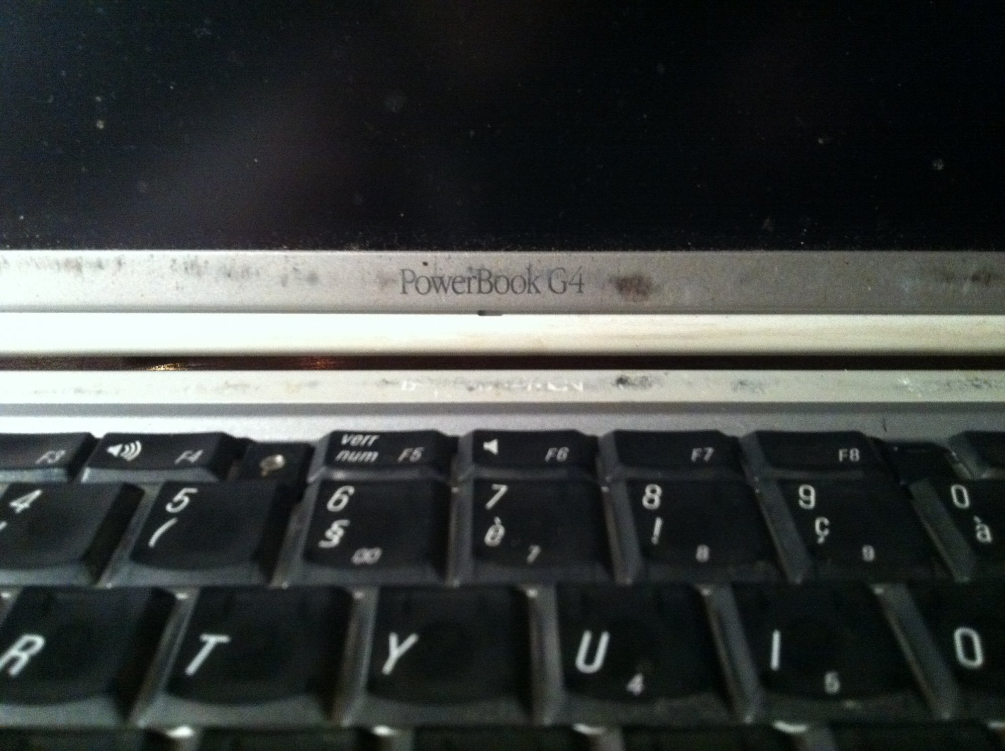 So I got the computer; it's (like most TiBook out there) really worn-out, as you can see in the pictures I took before cleaning it (sorry they're blurry because it was kinda dark in the room). It's a early model: 400Mhz, with a production date of 01/04/01.