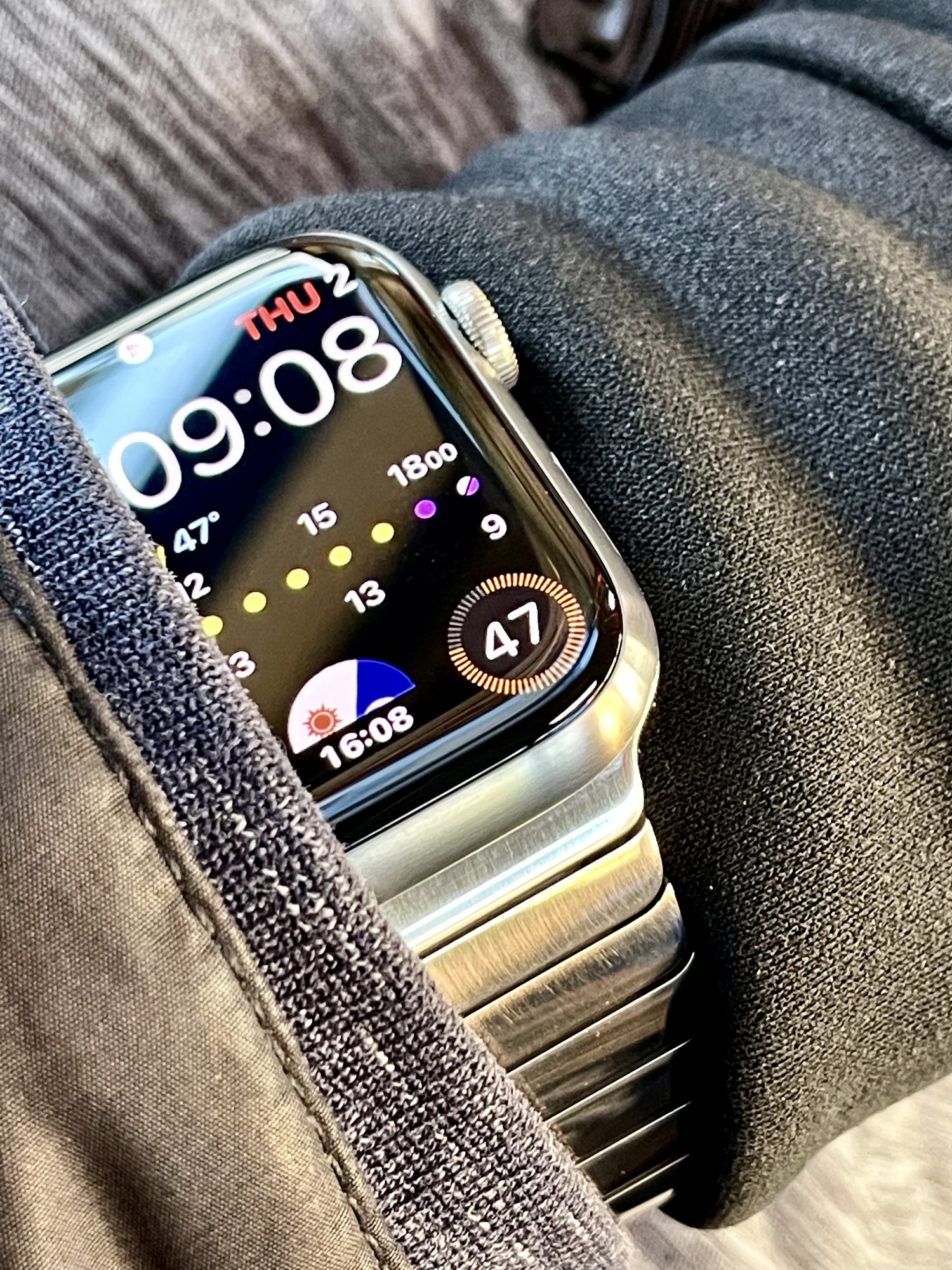 Metropolitan is a classic Apple Watch that changes style when the Digital crown is turned. Custom-designed numbers change in style and weight, and rotate to become pills when the wrist is down. Up to four complications can be added with the circular dial, and the colors are customizable.