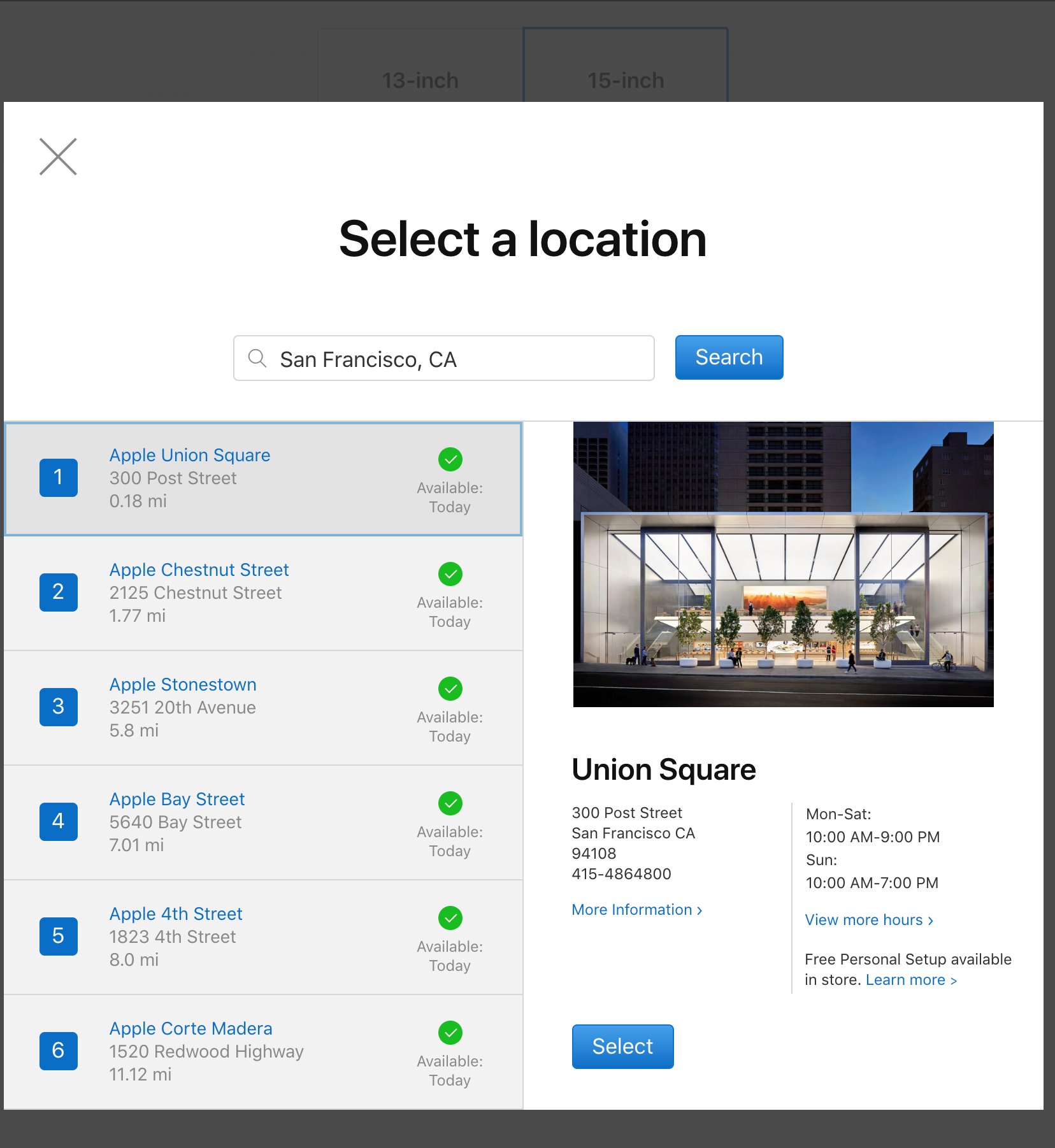 The 15" is sold out till Monday in almost all of the country (other than a few select spots).