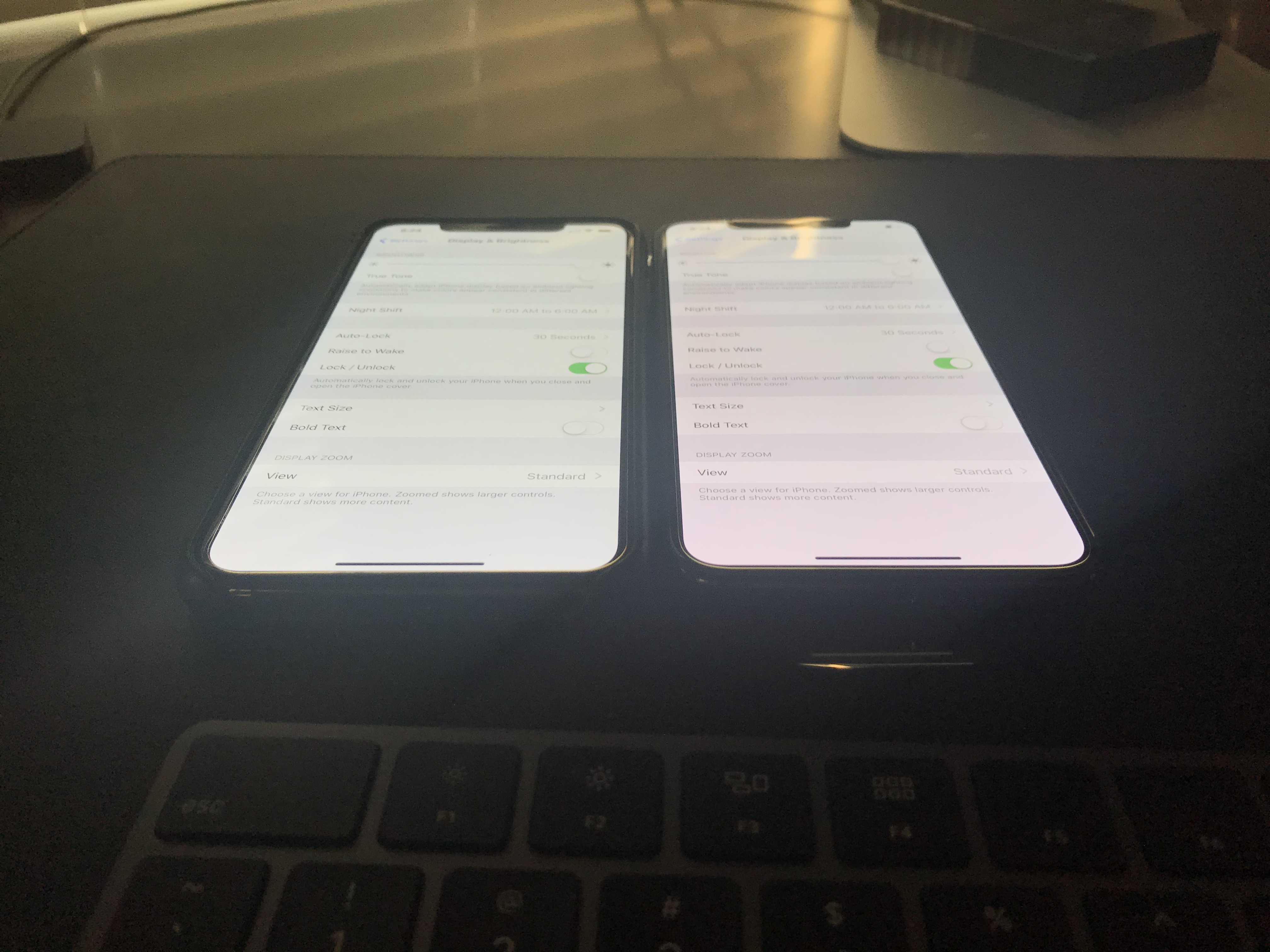 I took a photo of two XS MAX's to show the difference of screen at a different viewing angle. Mine is on the left, purchased on launch day. The one on the right is one purchased yesterday buy a friend directly from the Apple Store. There is a very noticeable pink Hue on the one right. Is the pink hue supposed to be there when the phone is tilted or is mine not right?