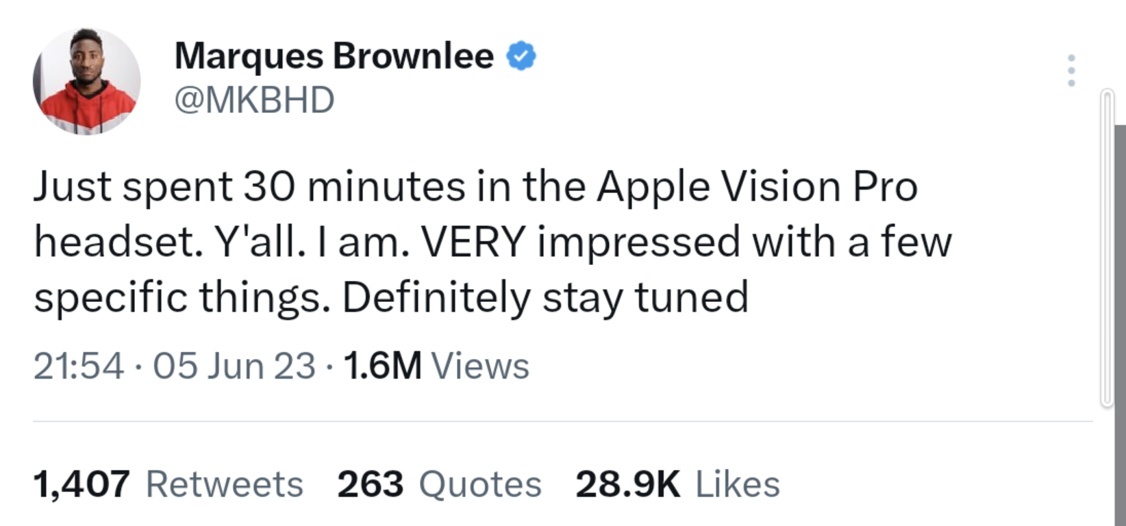 I had no interest in this at all before today. Now I am thinking goodbye to my MacBook, television and monitor. It won't be long before I think I won't need an iPhone. Just an Apple Watch and AirPods when out and about, and the VR at home will be fine. I may wait for the second generation, but I am tempted to go for it for it immediately. Given what it can replace I don't think the price is that unreasonable. $2999 would I suspect pull many more people in, but I'm willing to splash $3499 if it is as good as it seems to be.
