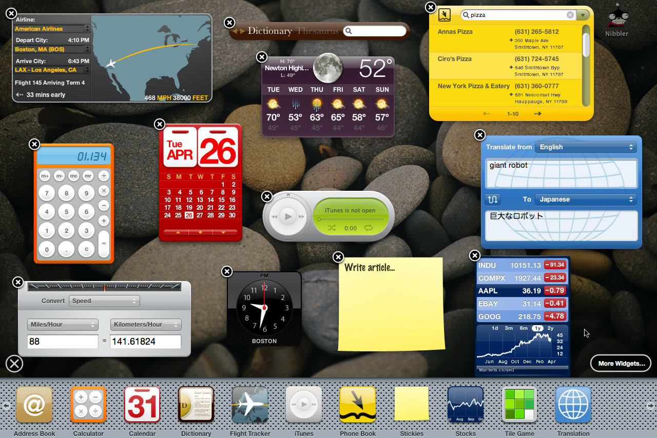 Nobody is cluttering your desktop, unless you actively choose to start putting widgets on it. Carry on.Stop cluttering my desktop.