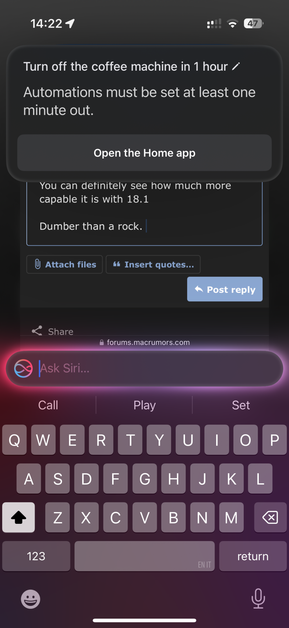 Yes and this is just the beginning of the list of issues I constantly have across the devices. I was actually talking yesterday to a colleague about how rubbish macOS turned into, then I came home, switched Mac user account and the menu bar crashed, not responding. Apps were not responding properly but only to certain commands, I had to log back into my partner's account, save everything, force a reboot, just so she could get upset at me half an hour later because she had pages open in safari that could not be reopened with the reopen all windows from last session feature. Just a joke.100% agree and same experience here. My wife thinks I yell and swear at Siri more than I yell at Tesla when I leave voice notes in the car for how FSD 12.5.4.2 messes up!