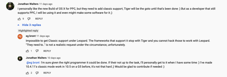 Maybe get a hold of this Jonathan Walters chappy. He claims to have got Classic running on a G5 under Leopard already, although what "work" actually means in this context isn't exactly clear. This came from the Action Retro account on Youtube. View attachment 1932604