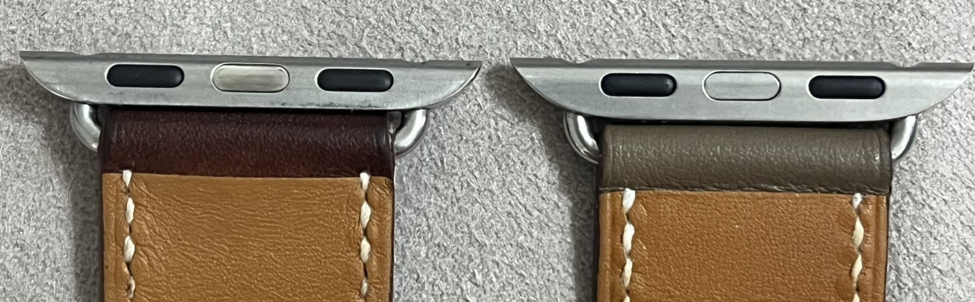Hello everyone, I need your help. I purchased a used Hermes double tour band and noticed a few differences from my 100% original old same band. The difference is that the pin on the new one has a matte color, like the hardware. On the old band the pin has a chrome surface. Owner’s of Hermes band, please tell me if anyone has the same matte pins on your band? If yes, please attach a photo, I searched the entire Internet and couldn’t find anything similar. Thank you.