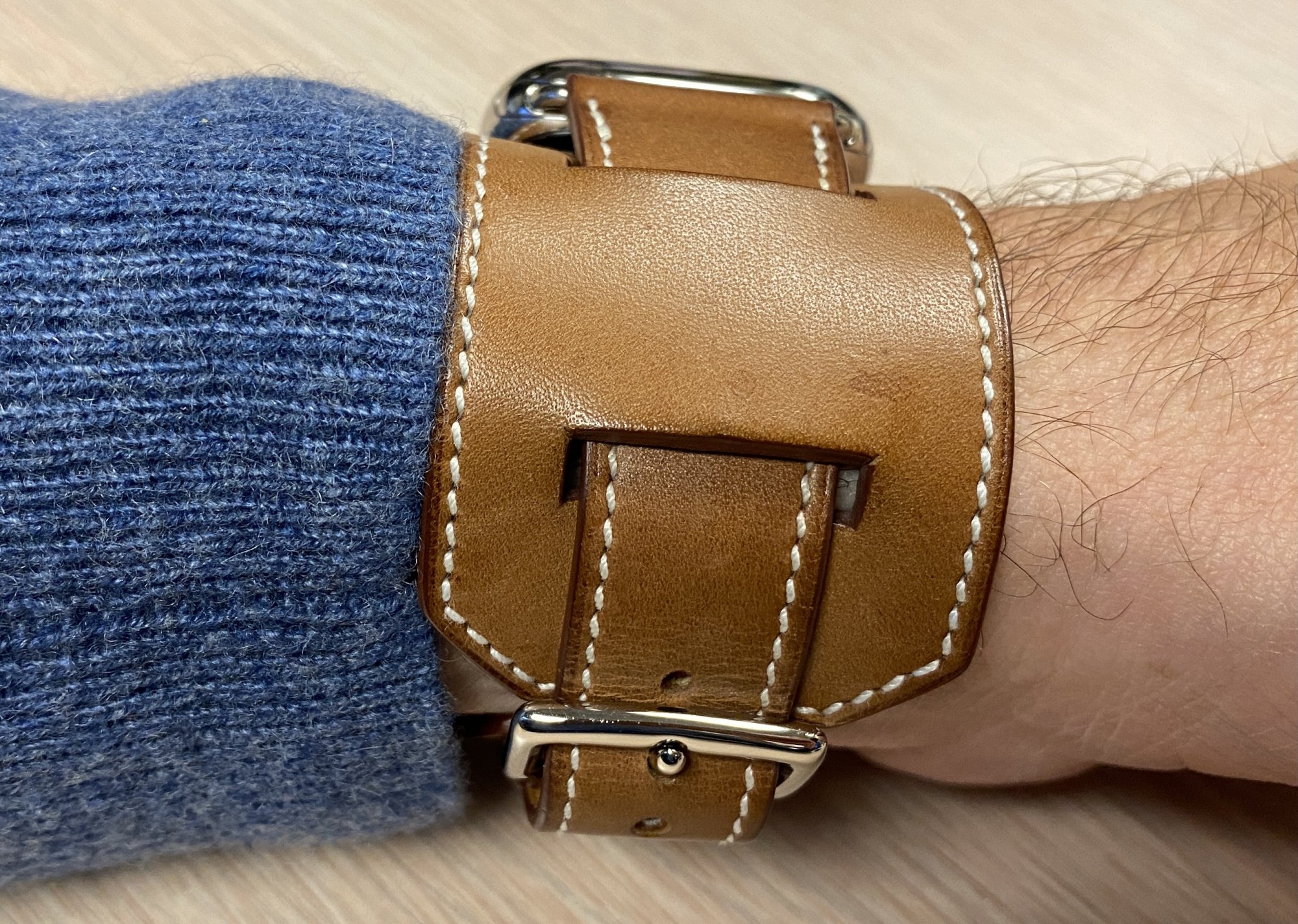 Thanks for the advice guys, Apple offered to let me keep my current watch until the SS Deployment arrives, but I think I'll stick with the SBSS for now and hope they release a SB Lug Deployment Buckle in the future. I'll just rotate the Hermes Single Tour strap with my Nomad strap to keep it in good condition.