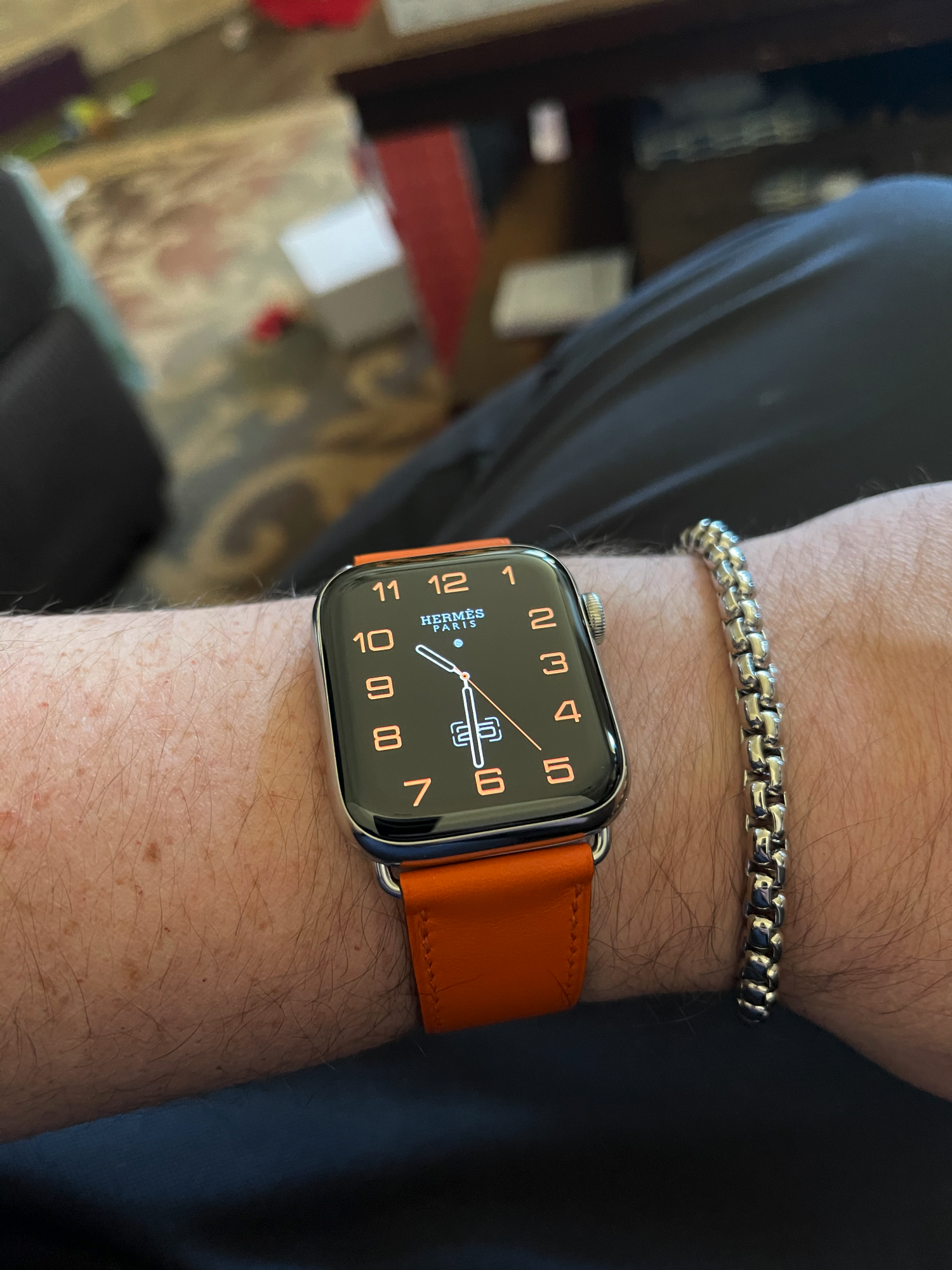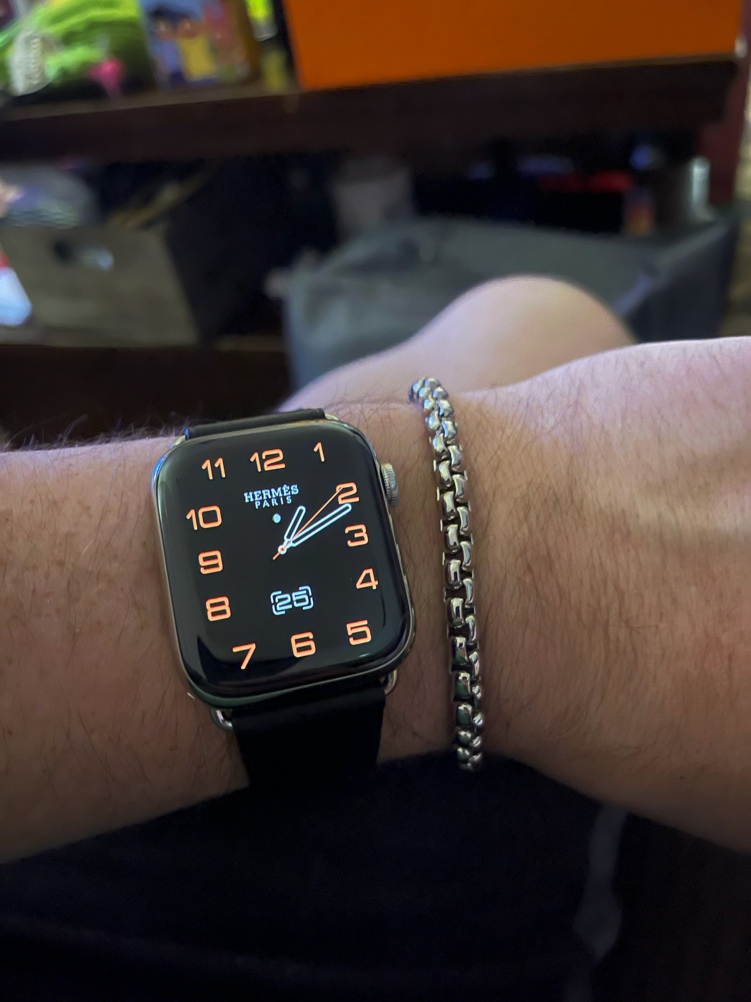 Got this for Xmas, black is the deployment buckle, wife surprised me with the Orange leather band and the bracelet.