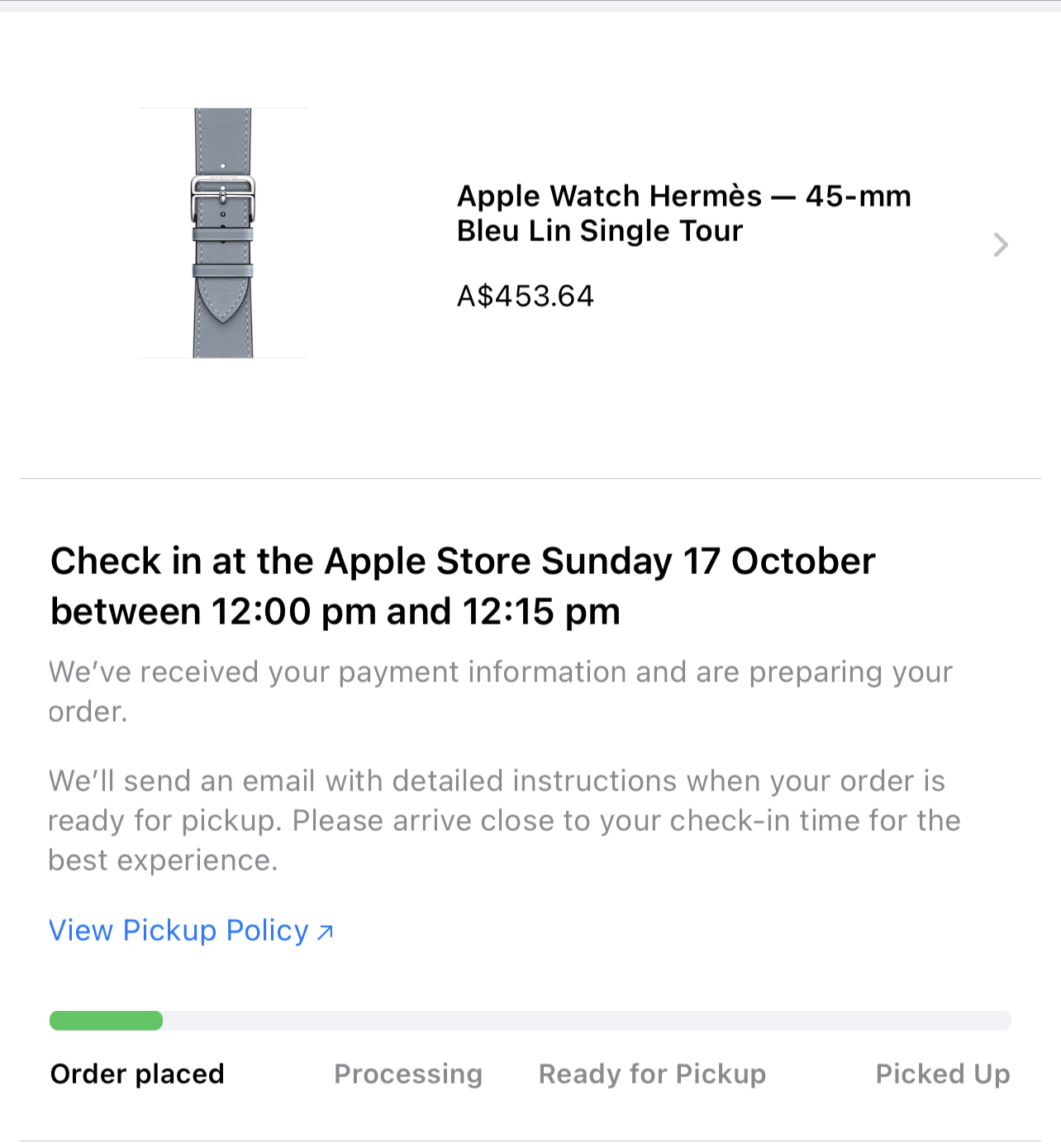 Ordered a SS 41mm with the Bleu Lin strap from Apple and from Hermès. The Apple one isn’t slated to ship until November, so I instead placed the order with Hermès (who says shipping on October 15th). Order still says “pending validation” though…
