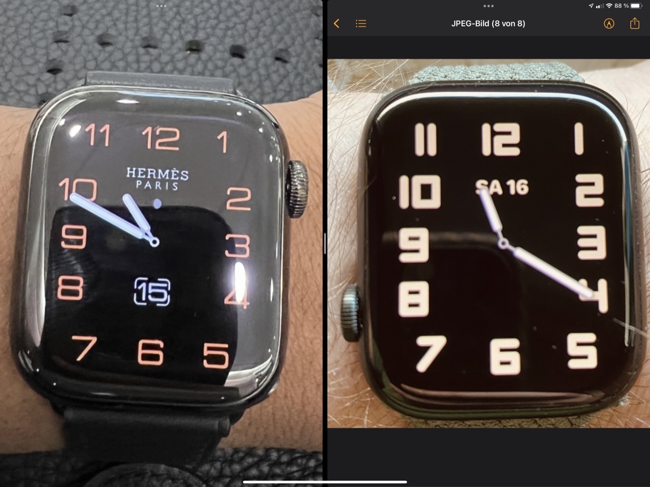 Wow … So (for me) the Hermès watch face advantage is officially gone. The Typograph digits are now actually closer to the edge than the Hermès digits in regular mode and just as close in always-on mode. Plus the Hermès watch faces are very probably still dimmer than the other watch faces (especially in AOD). As Phil Shiller may put it: “optimized“ my a**.