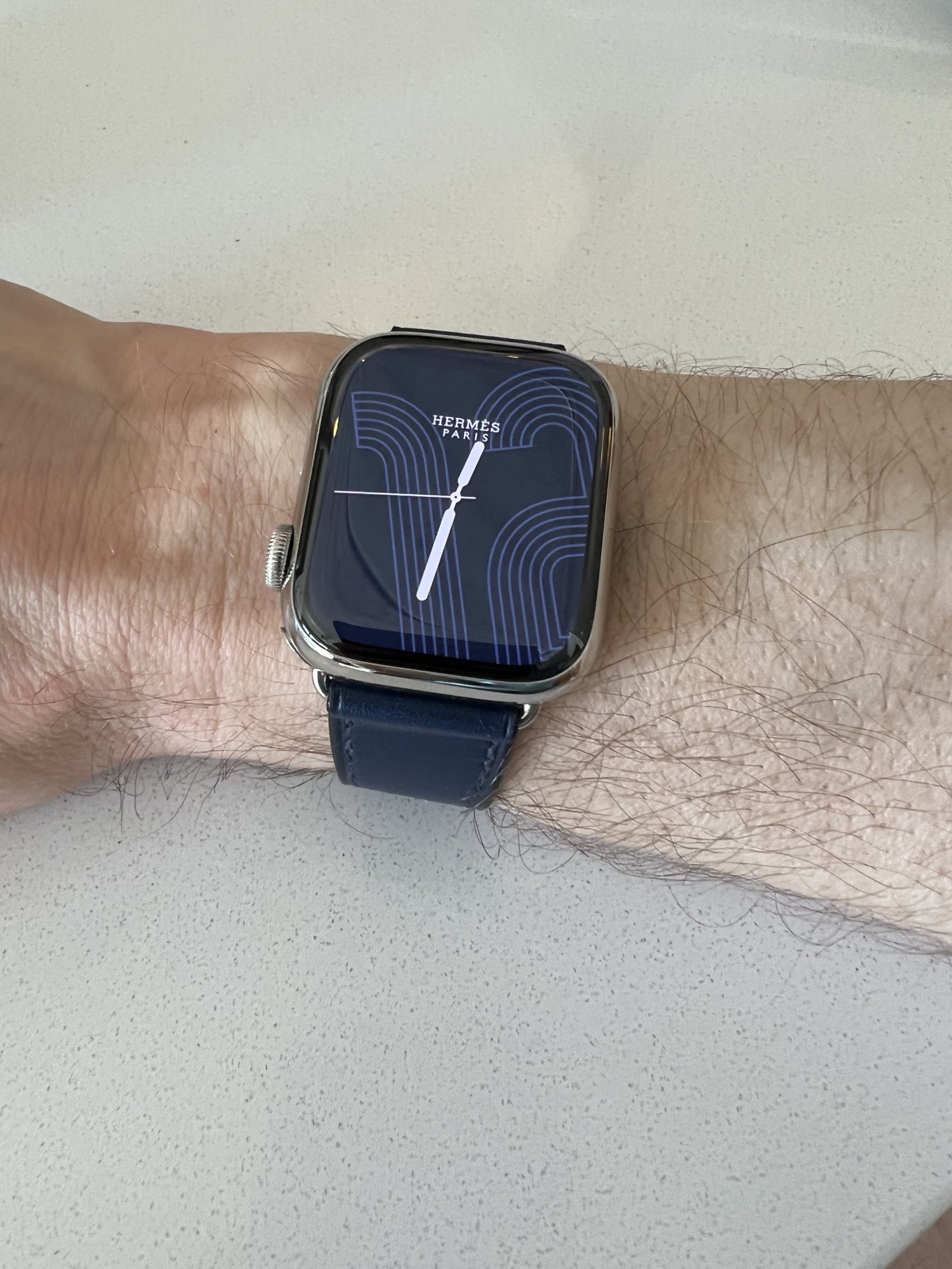 I would also like to know the answer to this question. The 41/45mm Navy bands do have different model numbers compared to the 40/44mm bands from the S6 era. But that could just be Hermes putting the same leather on 41/45mm lugs.Does anybody know if the new Navy color that was released with S7 is the exactly the same navy color that was released with S6.