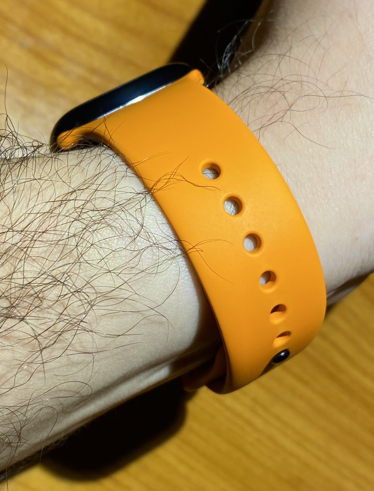 Now im absolutely kicking my self as this was my first choice when i saw the bands but on the Apple Store online to me the band looked more orange but in your pics it looks more of a tan colour which is my favourite.
